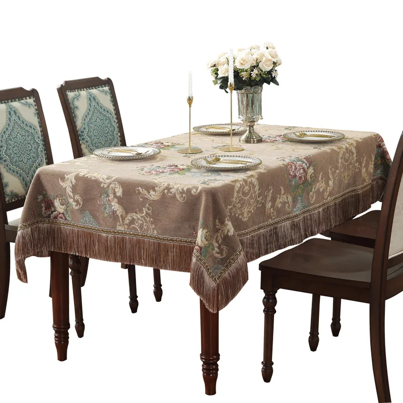 Manteles de chenilla Retro para mesa de comedor, borlas redondas rectangulares, Jacquard, Floral, cubierta para silla, cubierta para mesa, fiesta, eventos, hogar