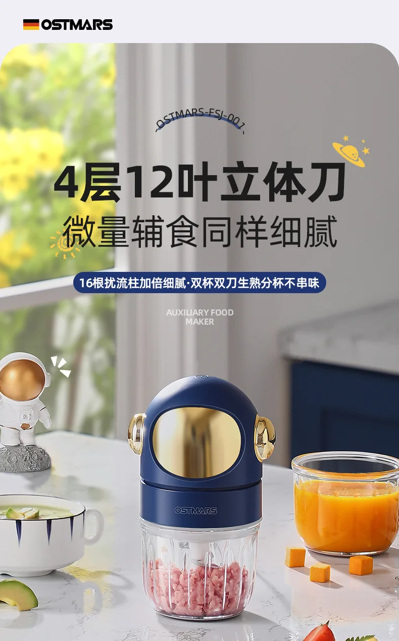 Máquina de alimentos complementarios para bebés, picadora de carne de 12 cuchillos, máquina de cocina de puré de patatas casera, tazas mezcladoras fáciles de limpiar