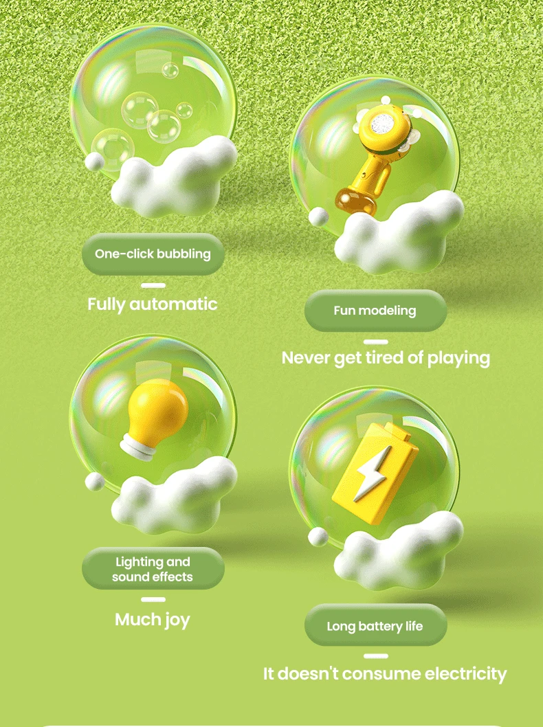 3. REGALO PERFECTO PARA TUS NIÑOS: Las varitas de burbujas también son un regalo perfecto.Su diseño versátil significa que se puede utilizar en una variedad de entornos, lo que lo hace adecuado para cumpleaños, fiestas o cualquier otra ocasión especial.Entonces, ¿por qué esperar?¡Regala el mágico juego de burbujas con la máquina de burbujas y deja que tu hijo entre en el mágico mundo de las burbujas!