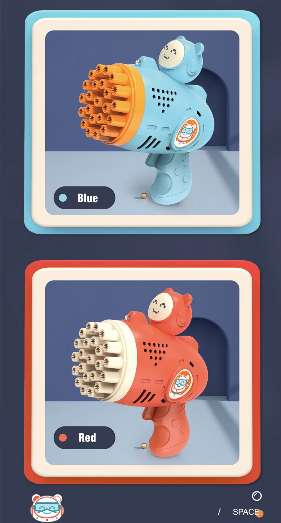 1.Seguro y de alta calidad:Este soplador de burbujas está hecho de material ABS y hecho de juguetes de espuma seguros para sus hijos y mascotas.El fabricante de burbujas no tiene bordes afilados ni olores desagradables, por lo que no hay necesidad de preocuparse de que los dedos de los niños se lastimen.Los niños pueden remojar de forma segura.