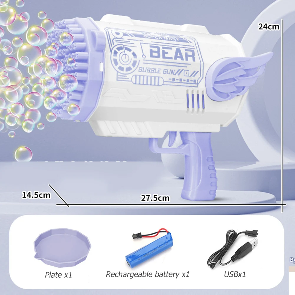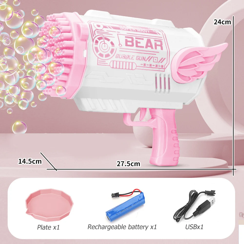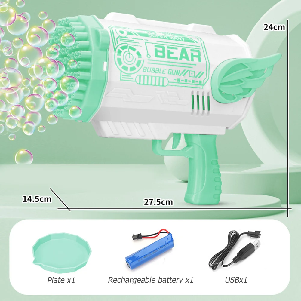 Pistola de burbujas de 80 agujeros, máquina de burbujas eléctrica, juguetes deportivos al aire libre para niños dos en uno
