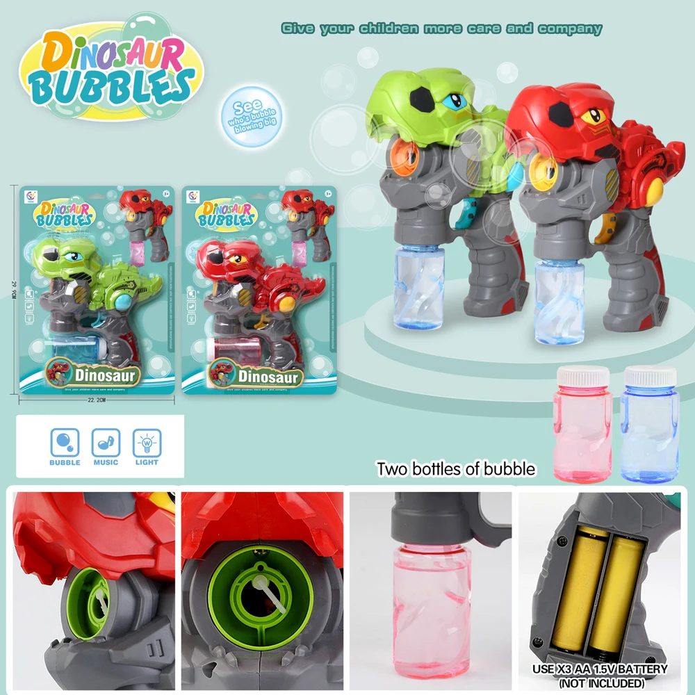 El paquete incluye: Pistola de burbujas de dinosaurio*1 Y botella de plástico de burbujas*2 (sin burbujas de agua)