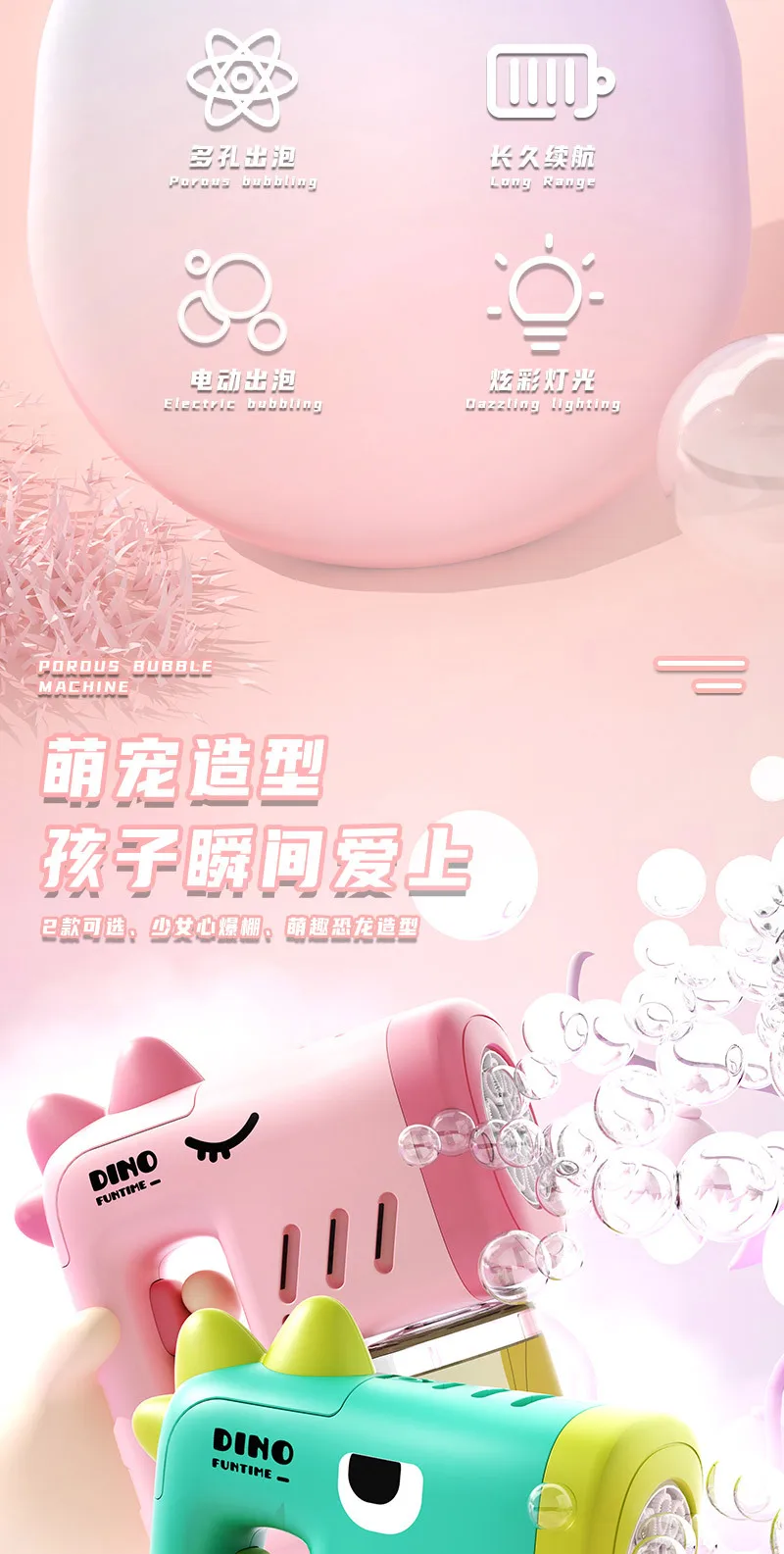 Comprar Máquina Eléctrica de burbujas de dinosaurio para niños, pistola de burbujas automática, juego al aire libre de verano, juguete de fantasía para niños, regalo de Navidad, nuevo