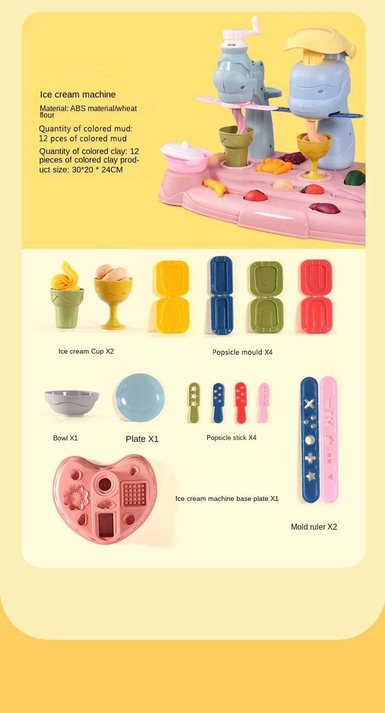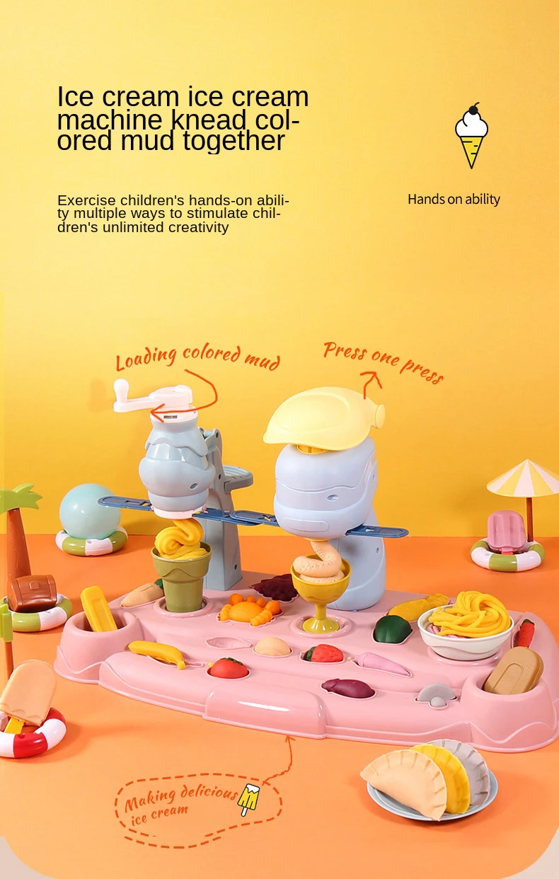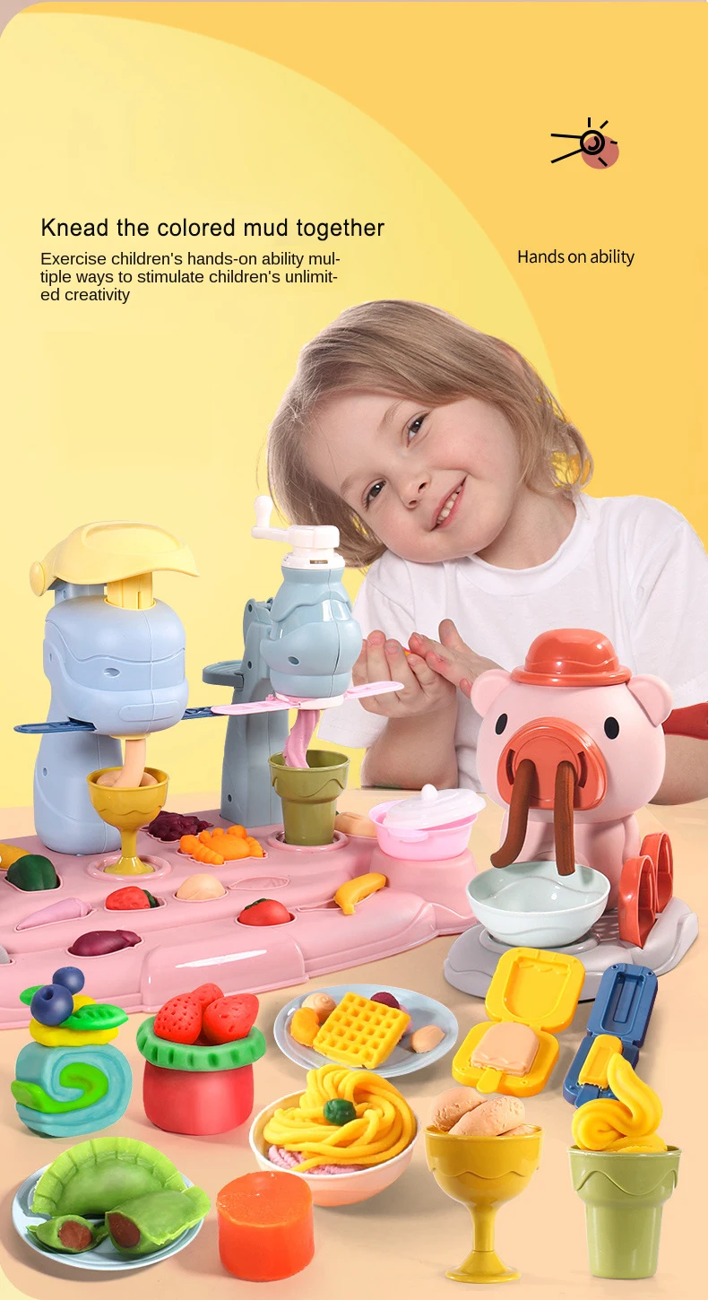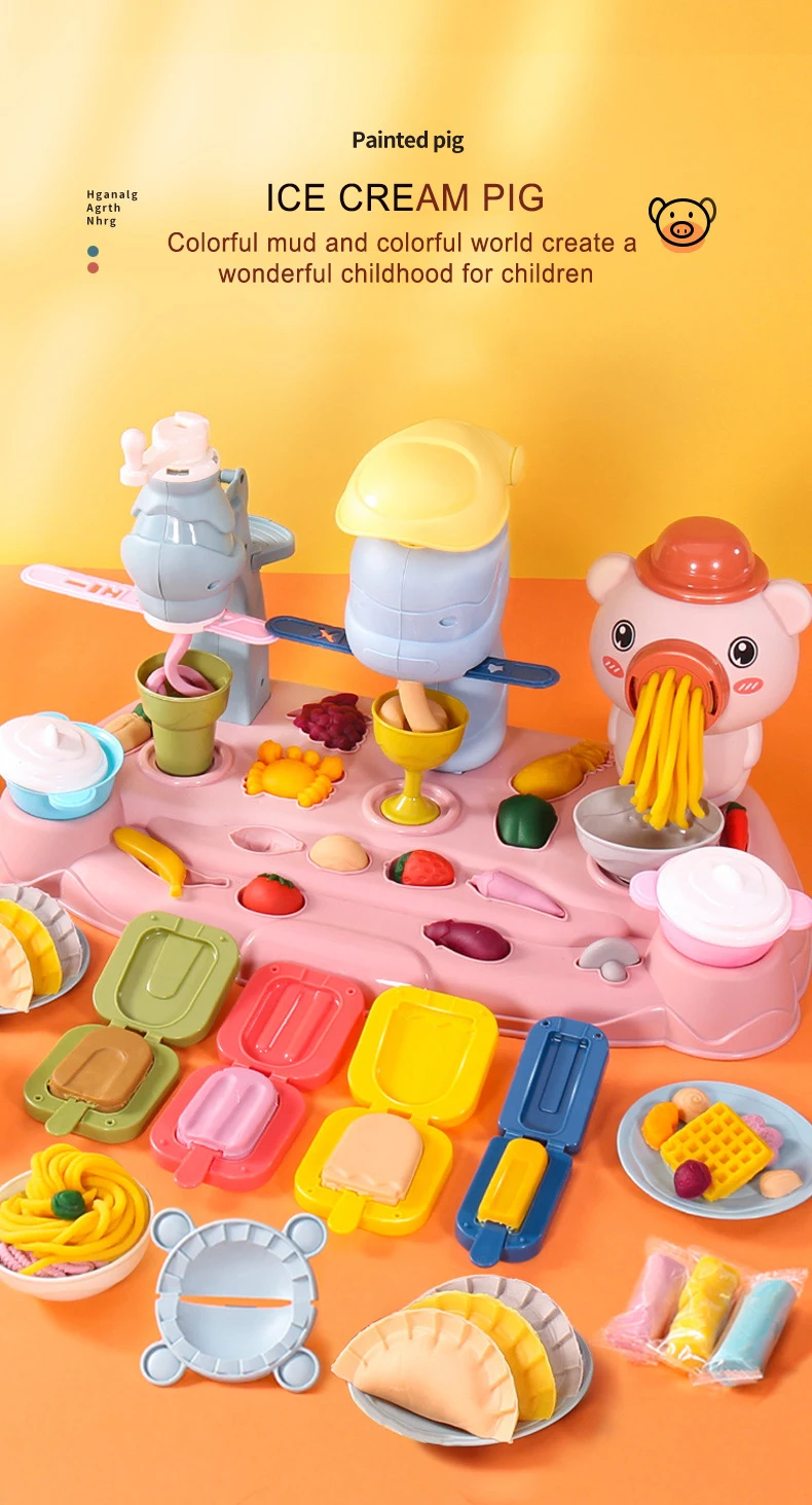 Máquina de fideos de imitación para niños, casa de juegos familiar, juego de juguetes, plastilina de colores, máquina de helados, molde, juguetes para niños