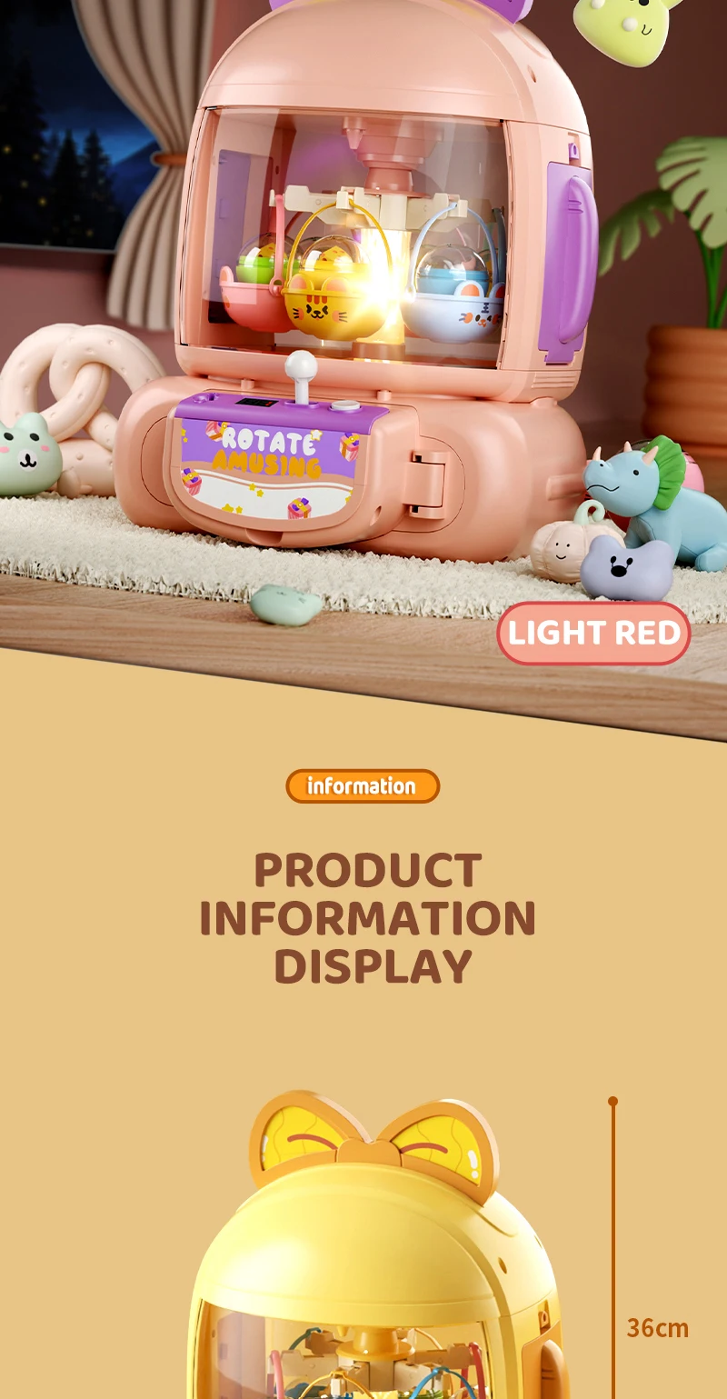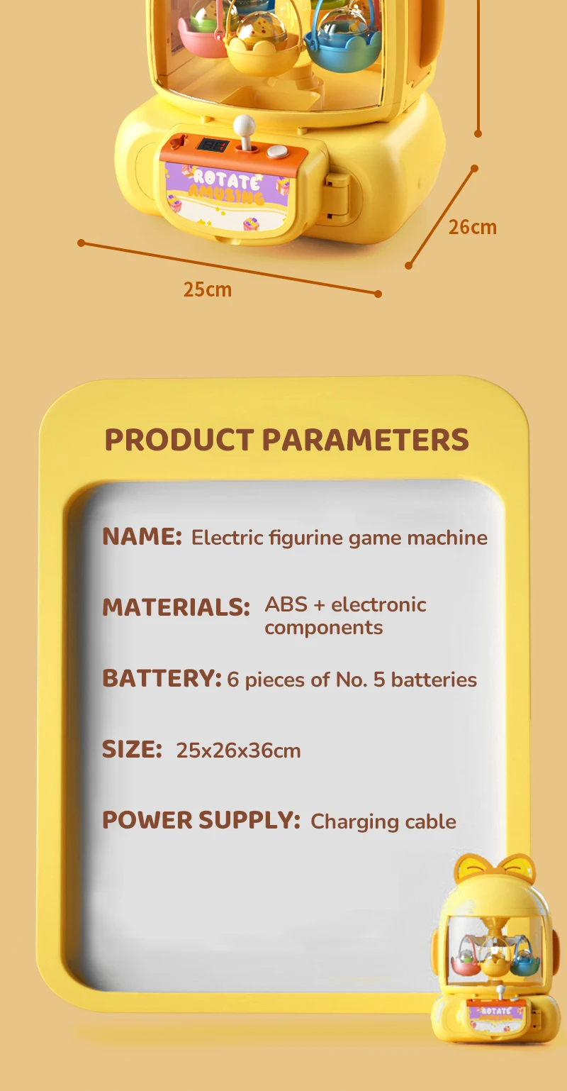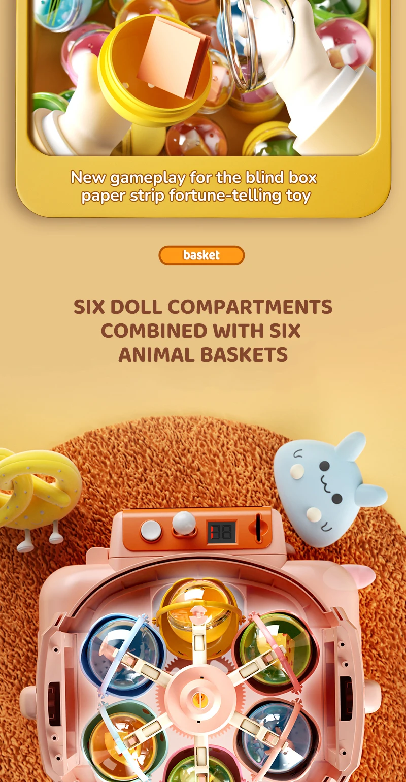 1 máquina de garras, 24 especificaciones de juego, 10 muñecas, 10 gashapon,6 cestas, 1 cable de carga