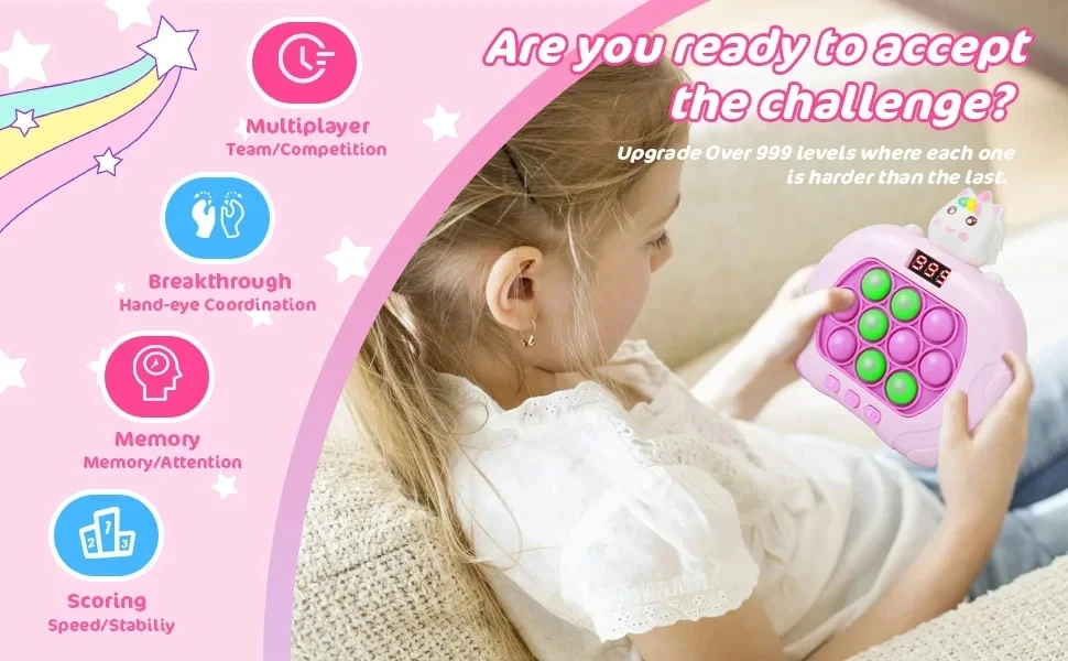 Máquina electrónica de juego de burbujas de empuje rápido Pop de 999 niveles, consola de juegos portátil para niños, Whac-A-ole, juguetes para aliviar el apretón, regalos