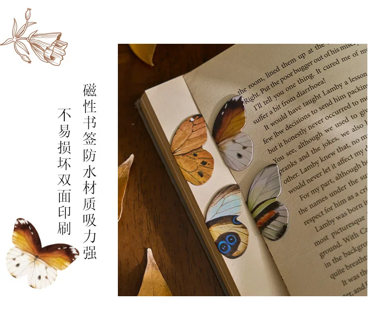 Un marcapáginas muy original para libros, mariposas sujetadas por un imán. Comodo, sostiene bien las páginas y se ve bonito. Se lo recomiendo a todos.