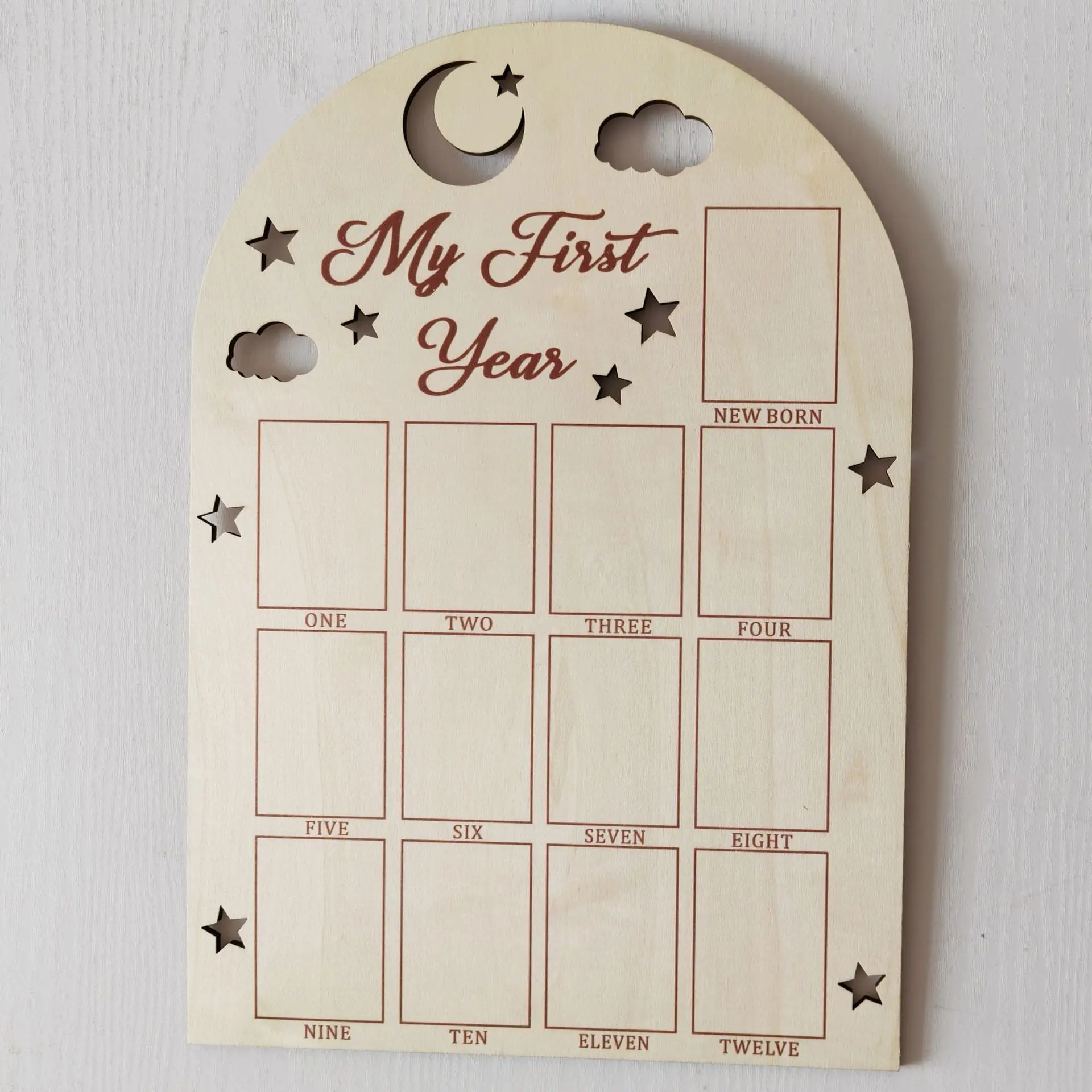Comprar Marco de fotos conmemorativo de madera para bebé, calendario mensual, tablero de exhibición de fotos, marco de fotos de hito para recién nacidos