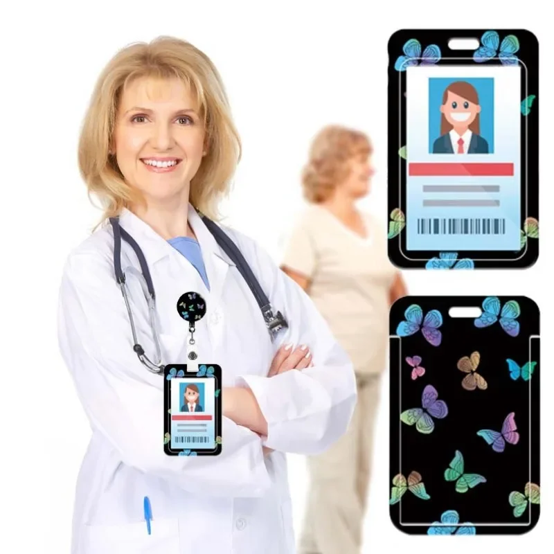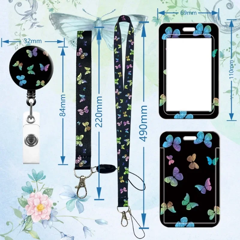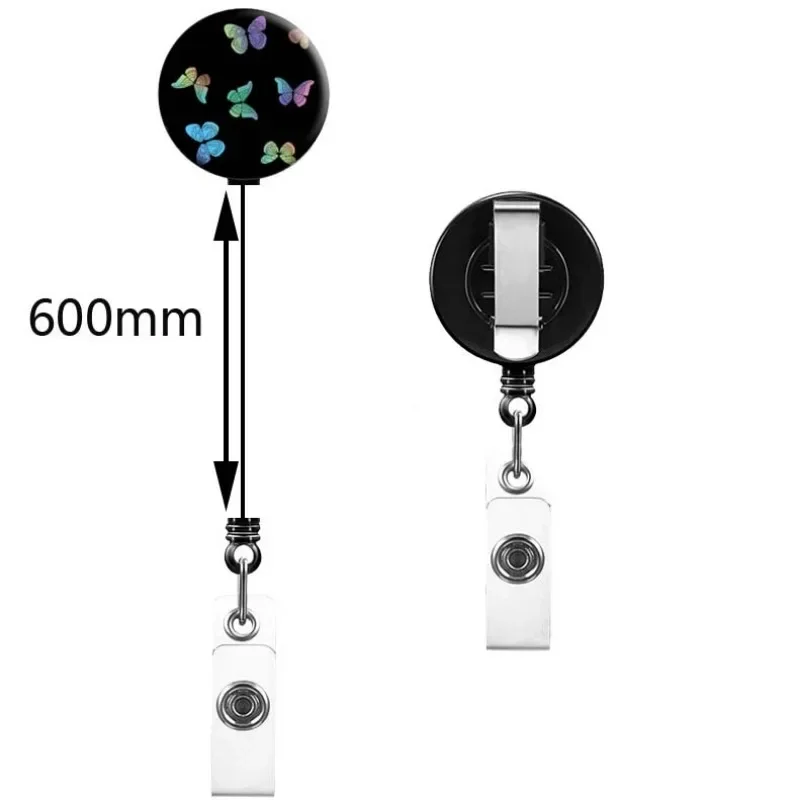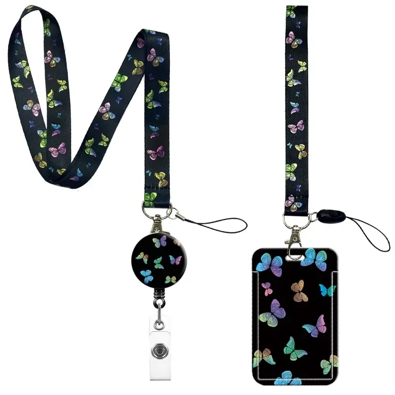 Comprar Mariposa colorida retráctil fácil de tirar carrete de insignia largo corto cordón para teléfono móvil tarjetero certificado Porta Credencial