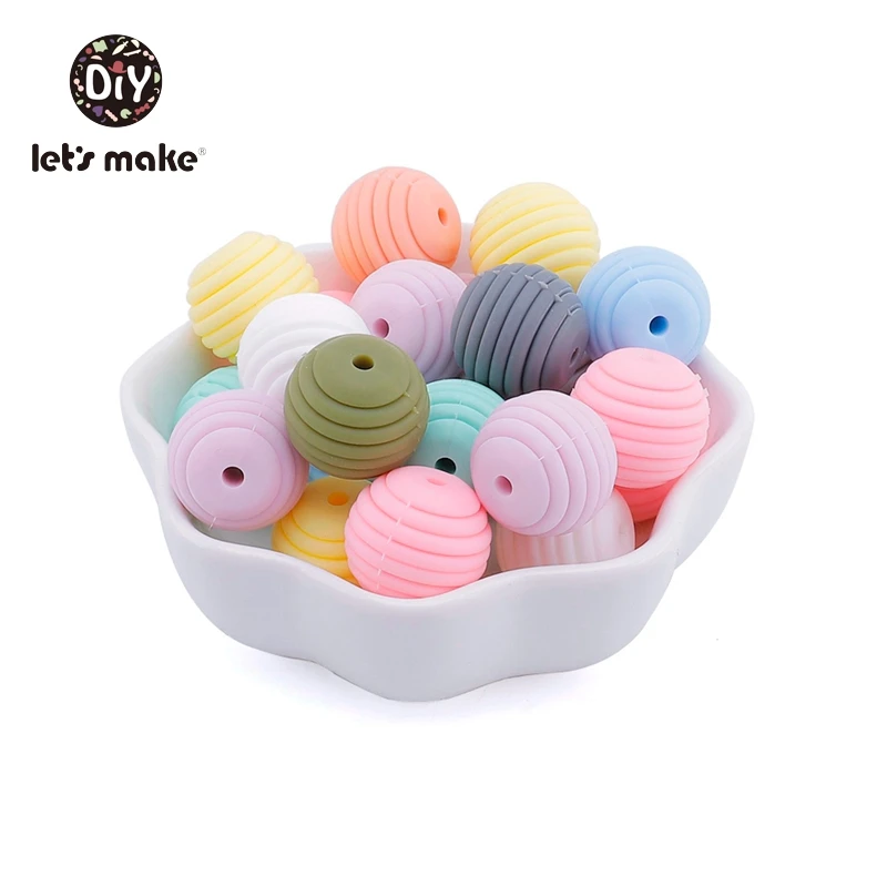Comprar Meamos mordedores de cuentas de silicona, 15mm, 20 piezas, cuentas de sílice roscadas DIY, sin BPA, 4-6 meses, dentición de silicona de grado alimenticio en espiral