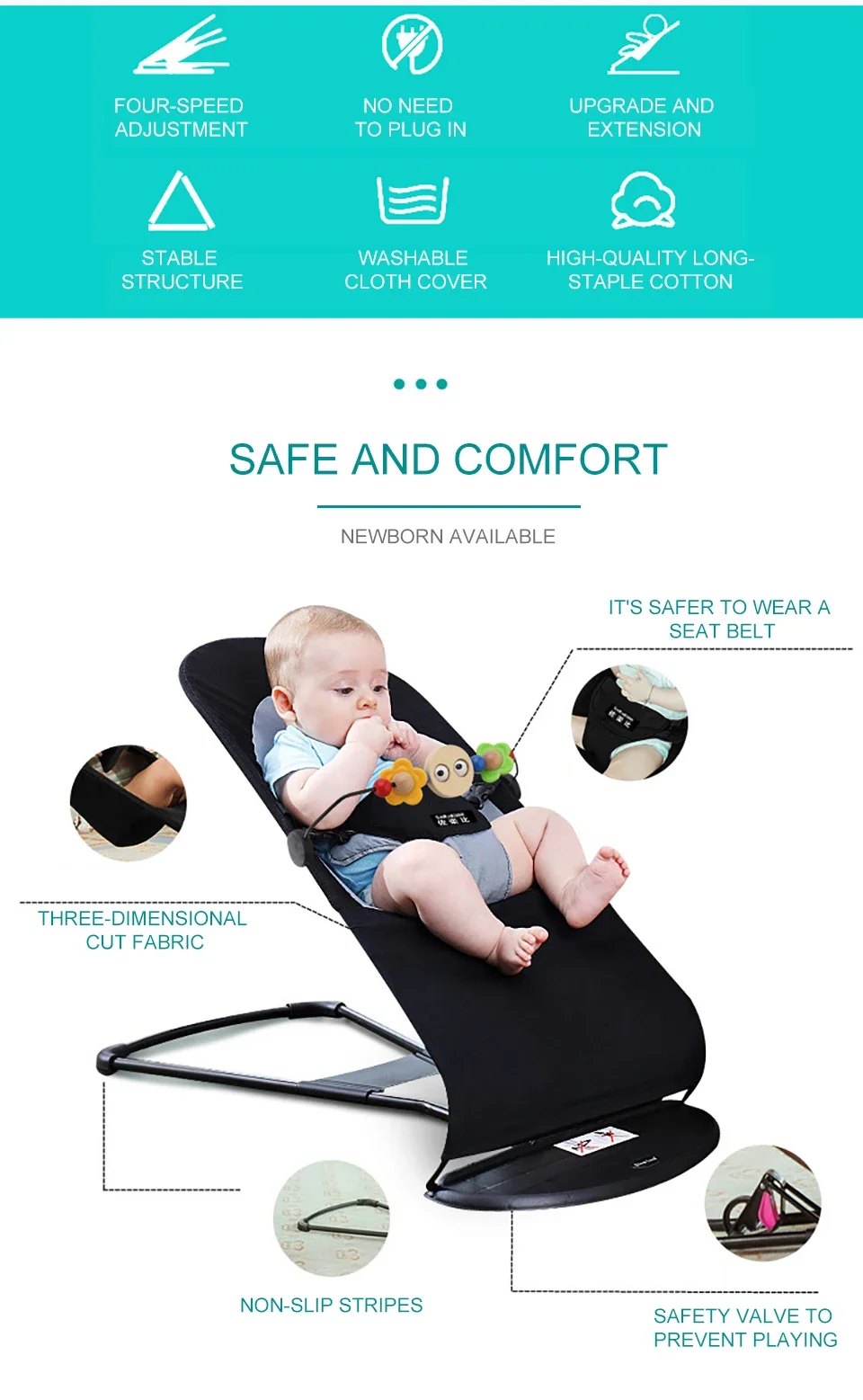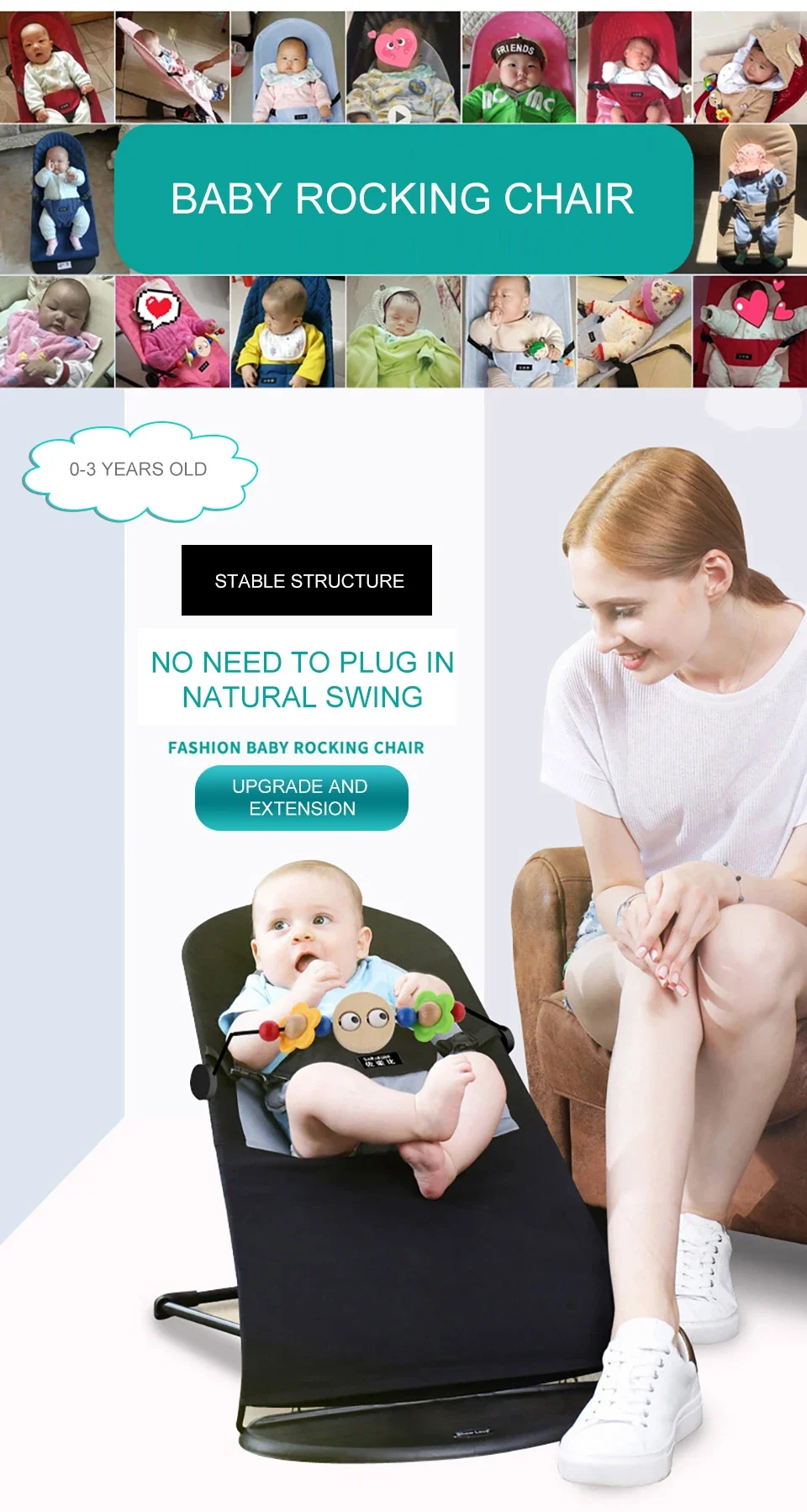 Comprar Mecedora para bebé, cuna para niño, artefacto para bebé, silla cómoda para recién nacido, cama para dormir con música, sillón reclinable para bebé