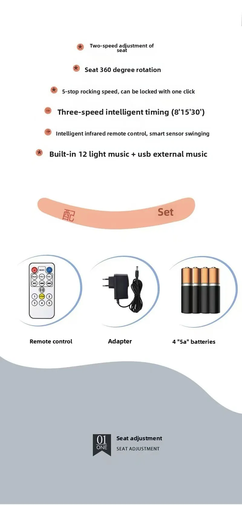 Mecedora calmante, cuna para dormir para bebé, sentado y tumbado, no ajustable