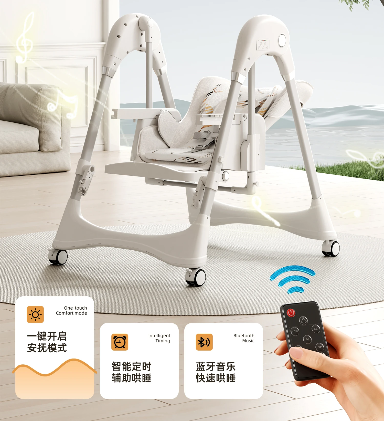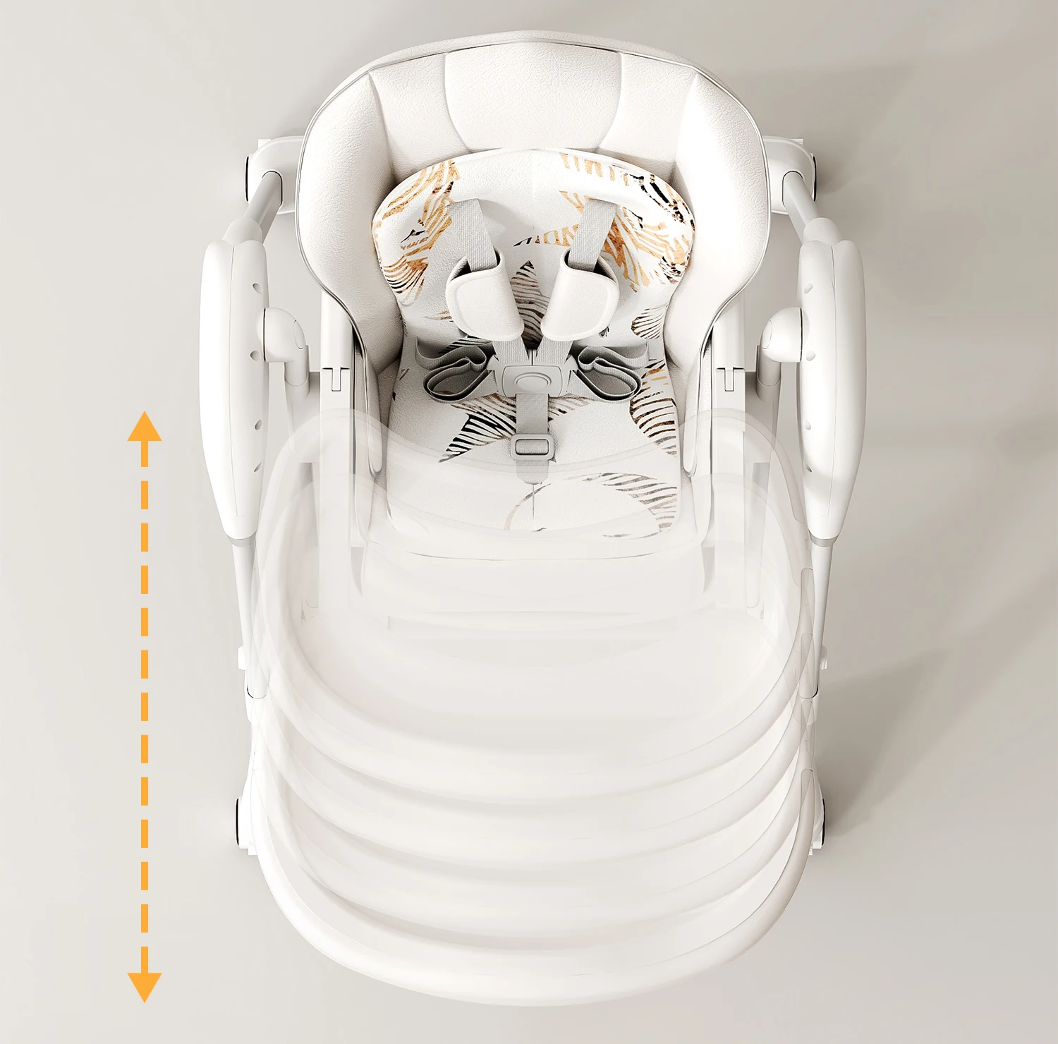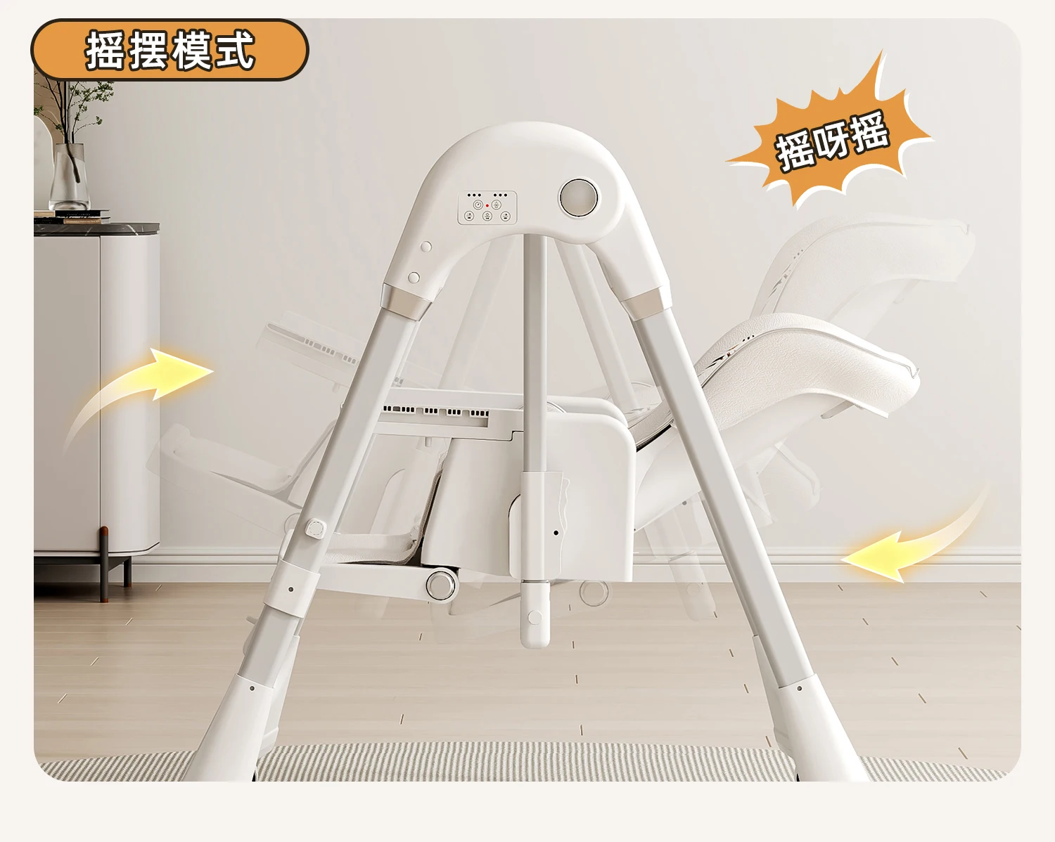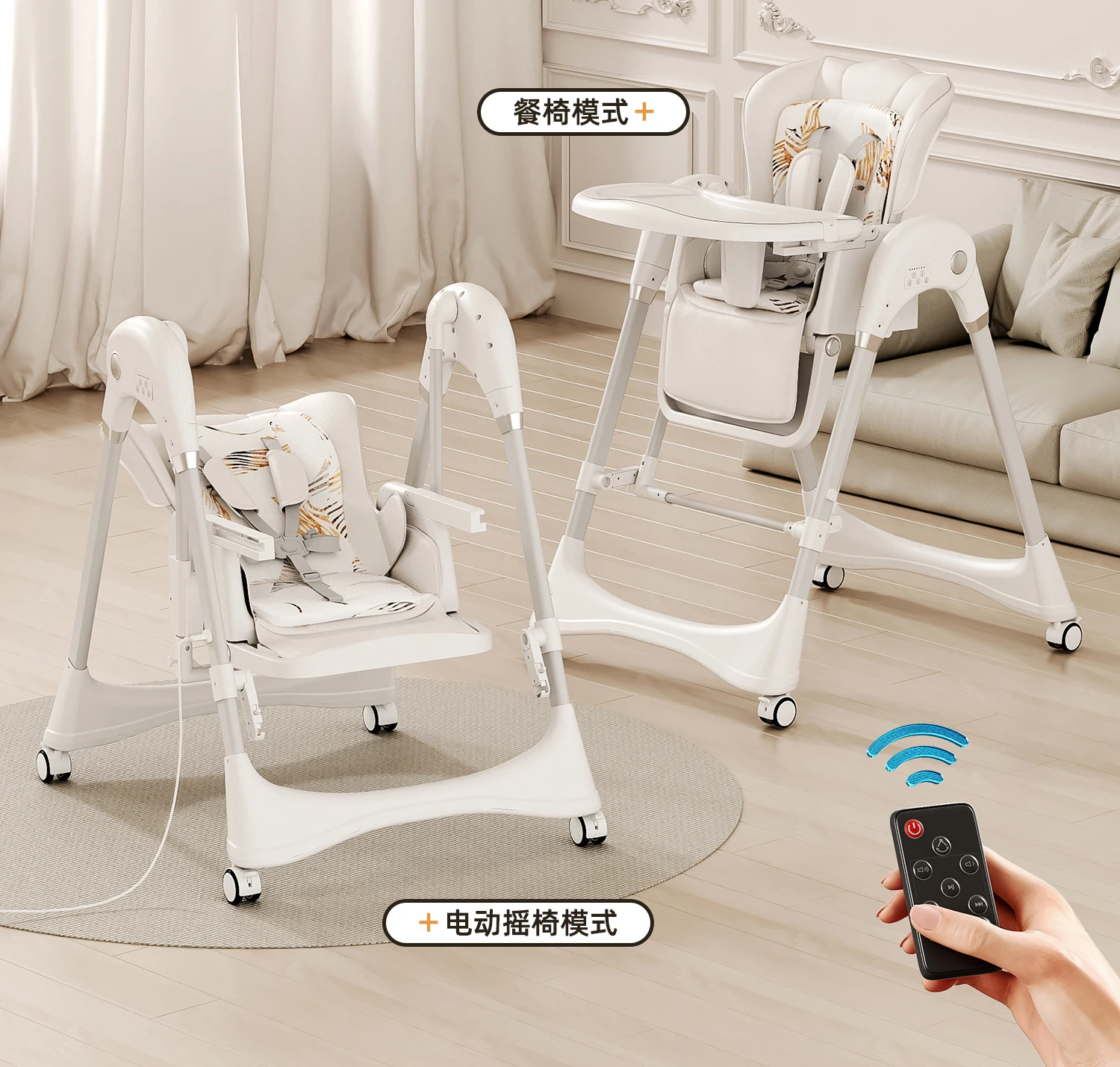 Mecedora eléctrica para bebé, asiento de alimentación multiinfantil de 4 ruedas, altura ajustable con cinturón de seguridad, cómodo reclinable