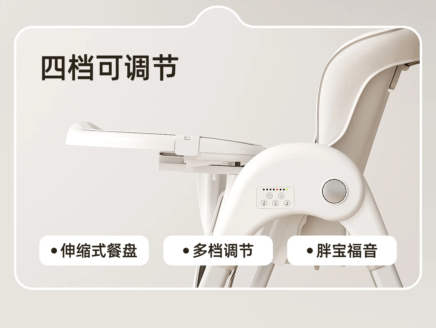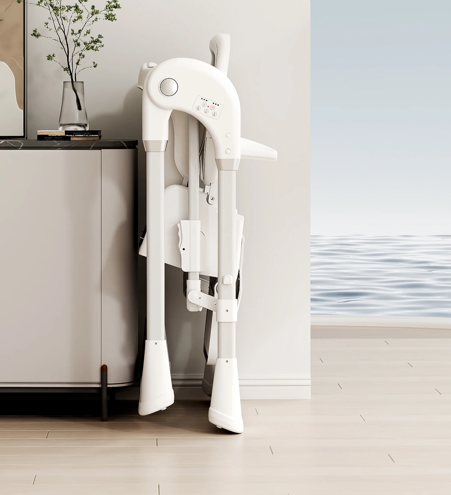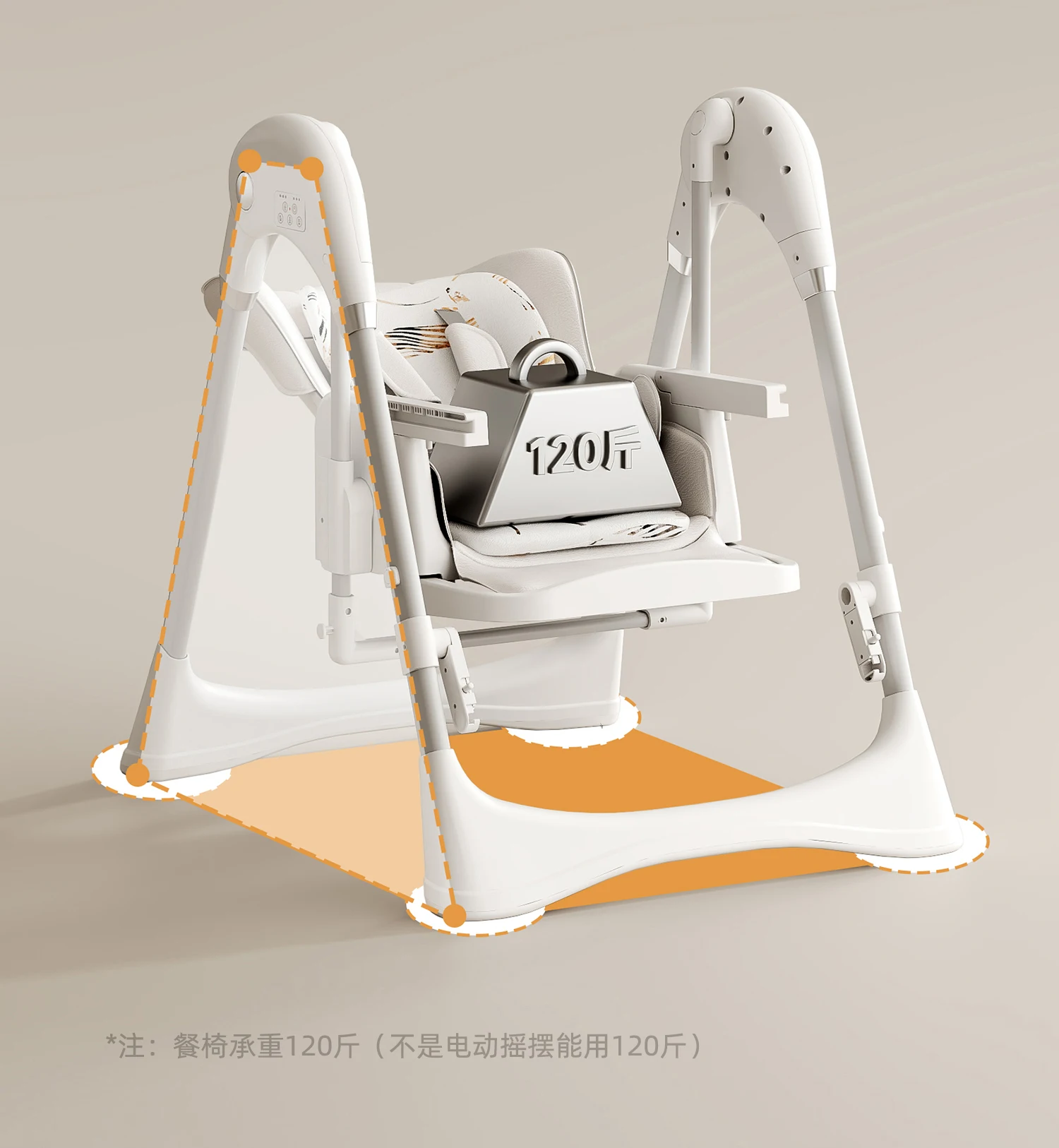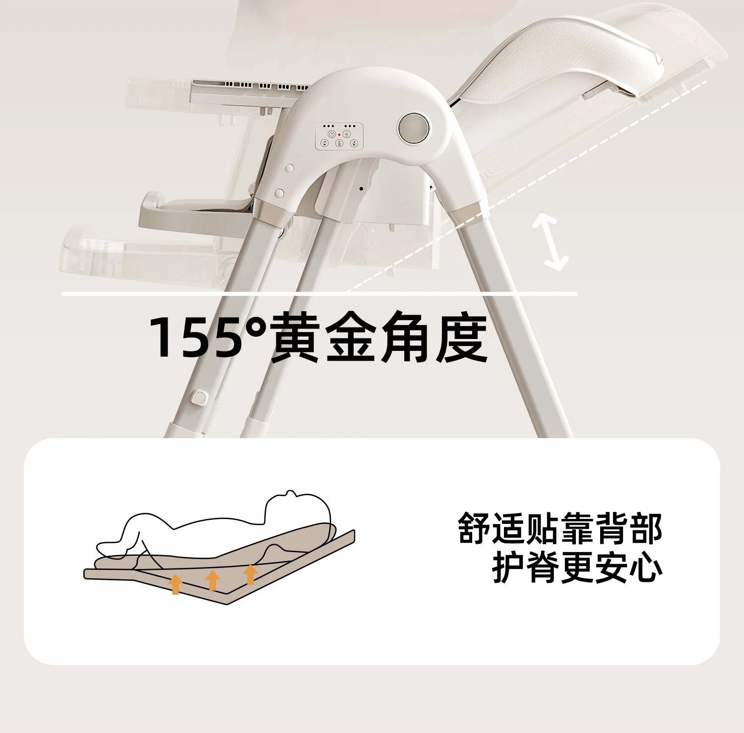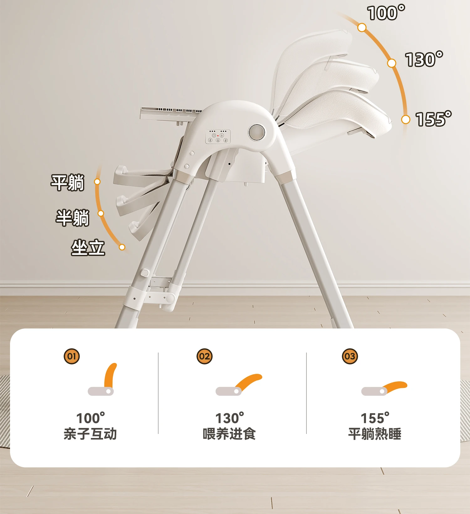 Mecedora eléctrica para bebé, asiento de alimentación multiinfantil de 4 ruedas, altura ajustable con cinturón de seguridad, cómodo reclinable