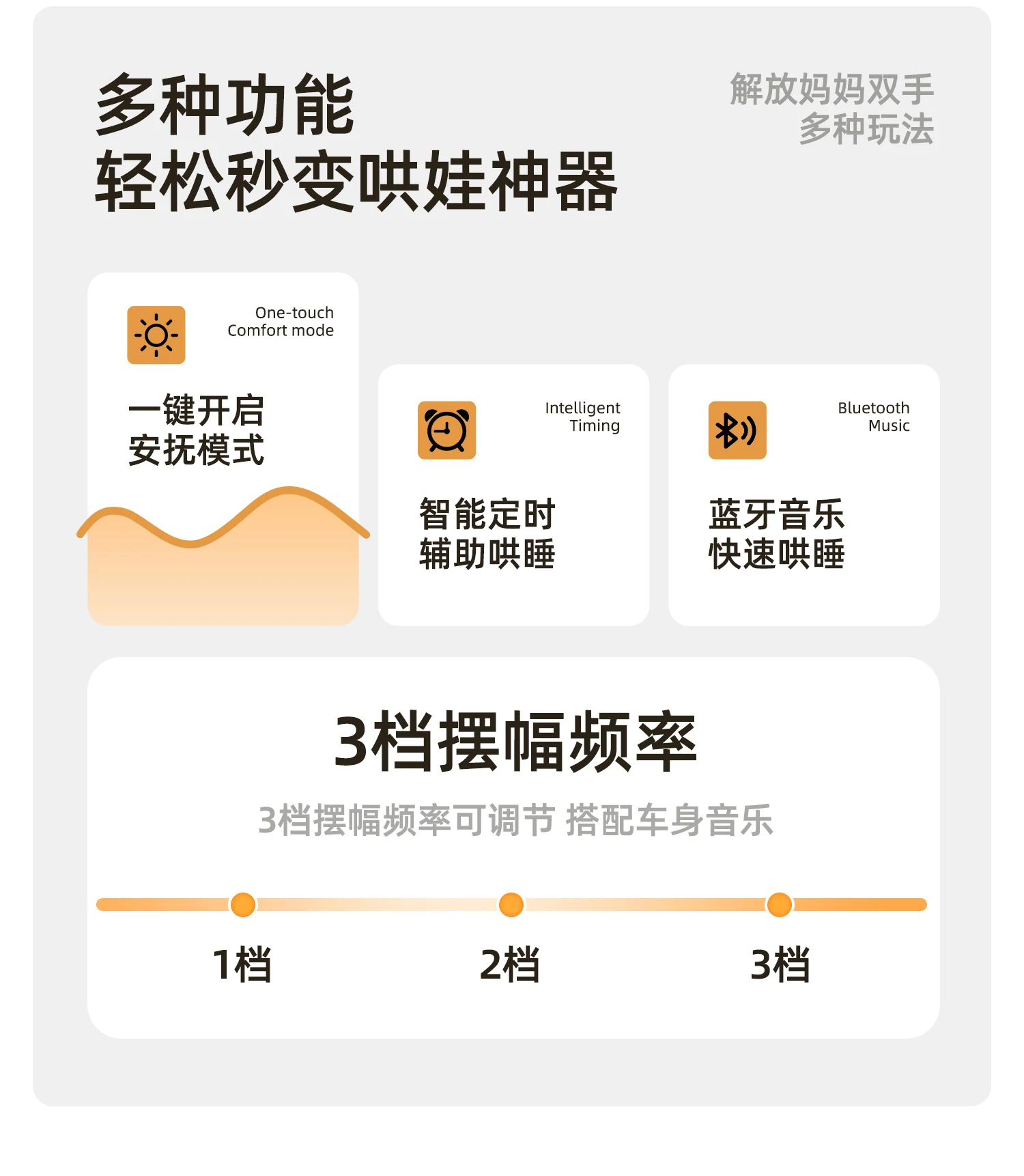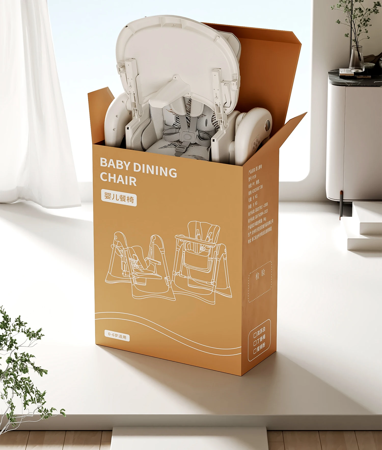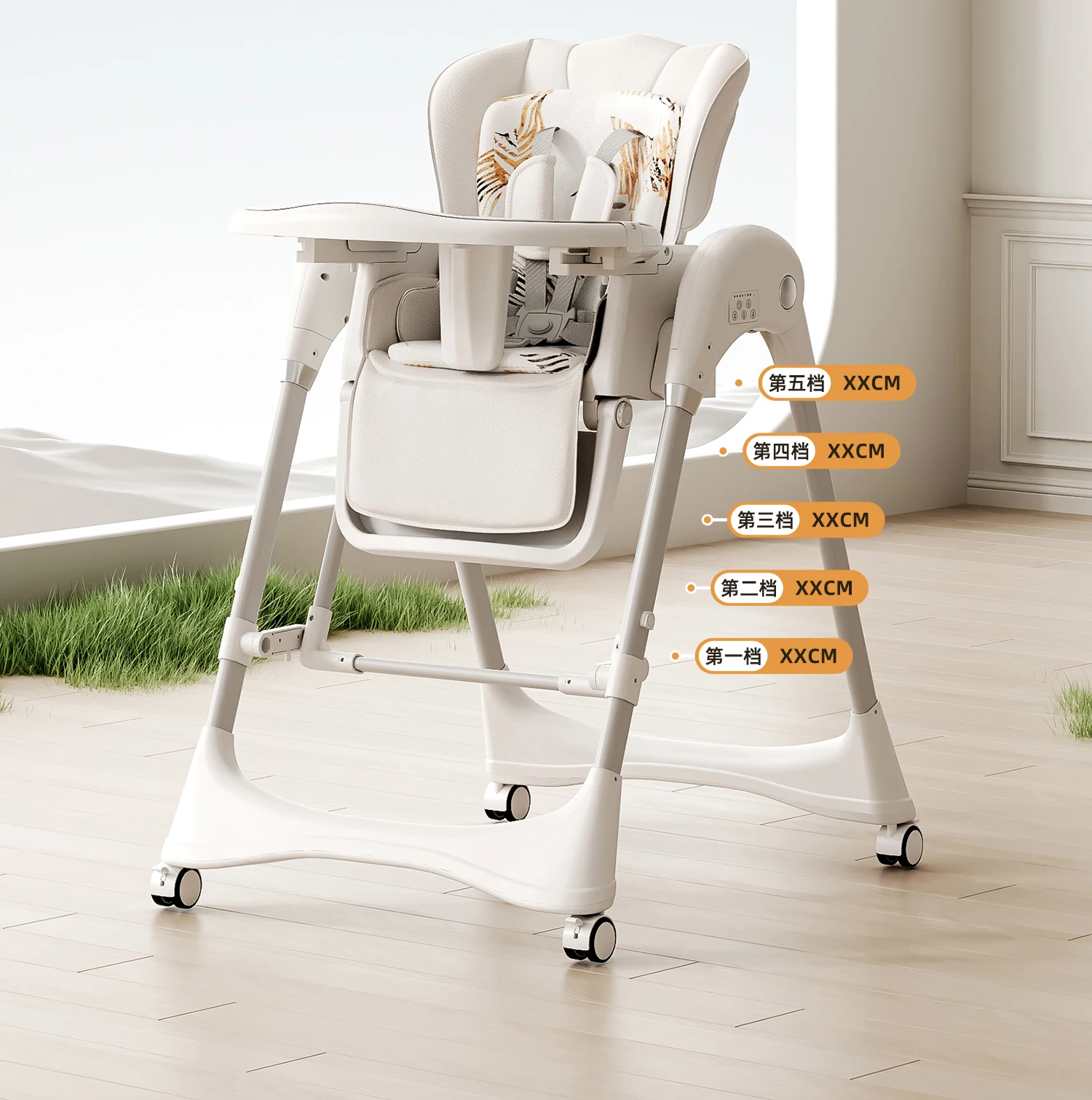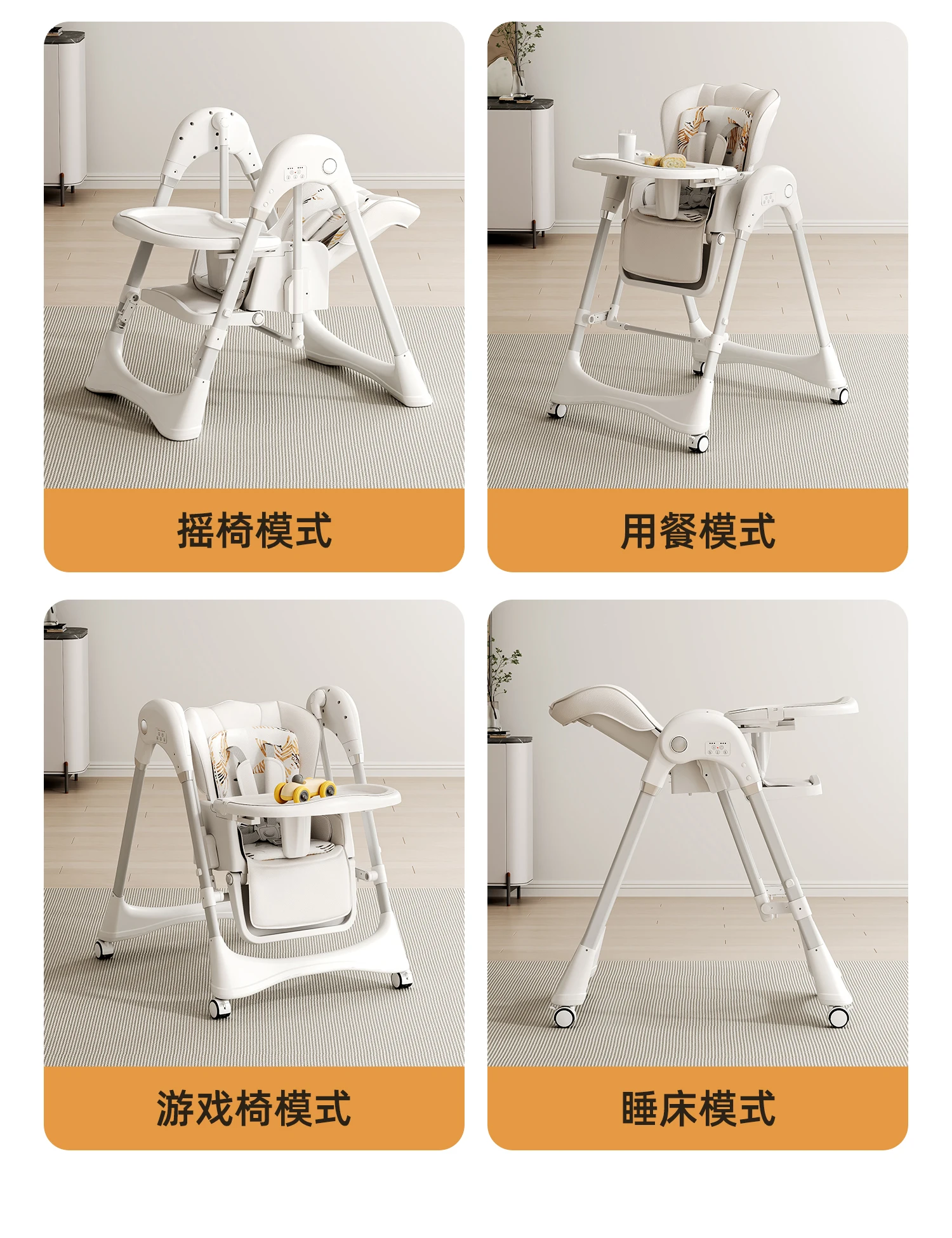 Mecedora eléctrica para bebé, asiento de alimentación multiinfantil de 4 ruedas, altura ajustable con cinturón de seguridad, cómodo reclinable