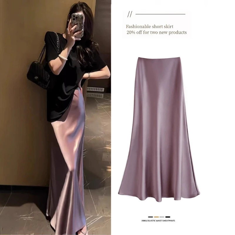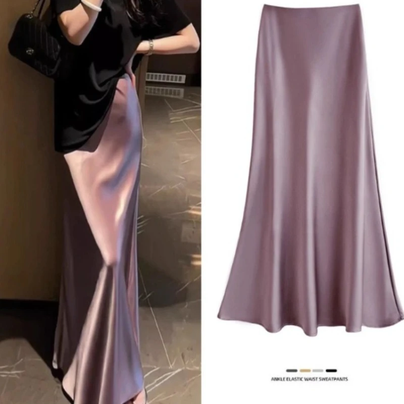 Media falda adelgazante de cintura alta para mujer, vestido largo acampanado con nalgas y cola de pez, falda ligera elegante de satén de longitud media