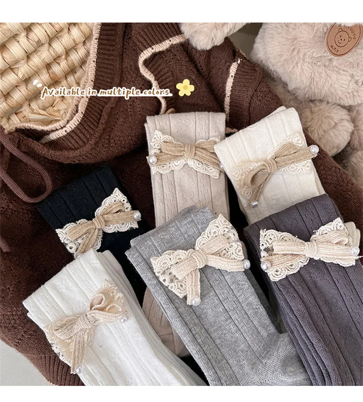 Comprar Medias de algodón de punto con lazo para niña pequeña, de cintura alta pantimedias, otoño