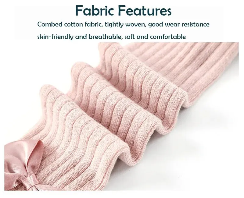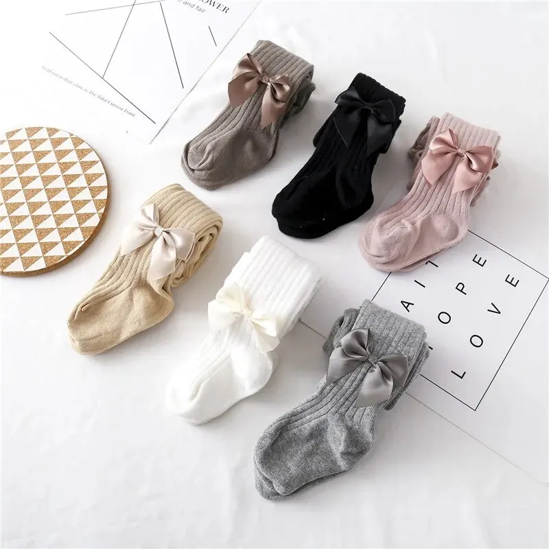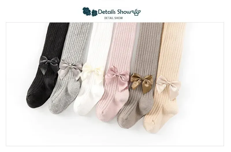 Medias lisas para primavera y otoño para niños de 0 a 6 años, pantimedias a rayas de algodón suave para niñas, mallas tejidas con lazo para niños