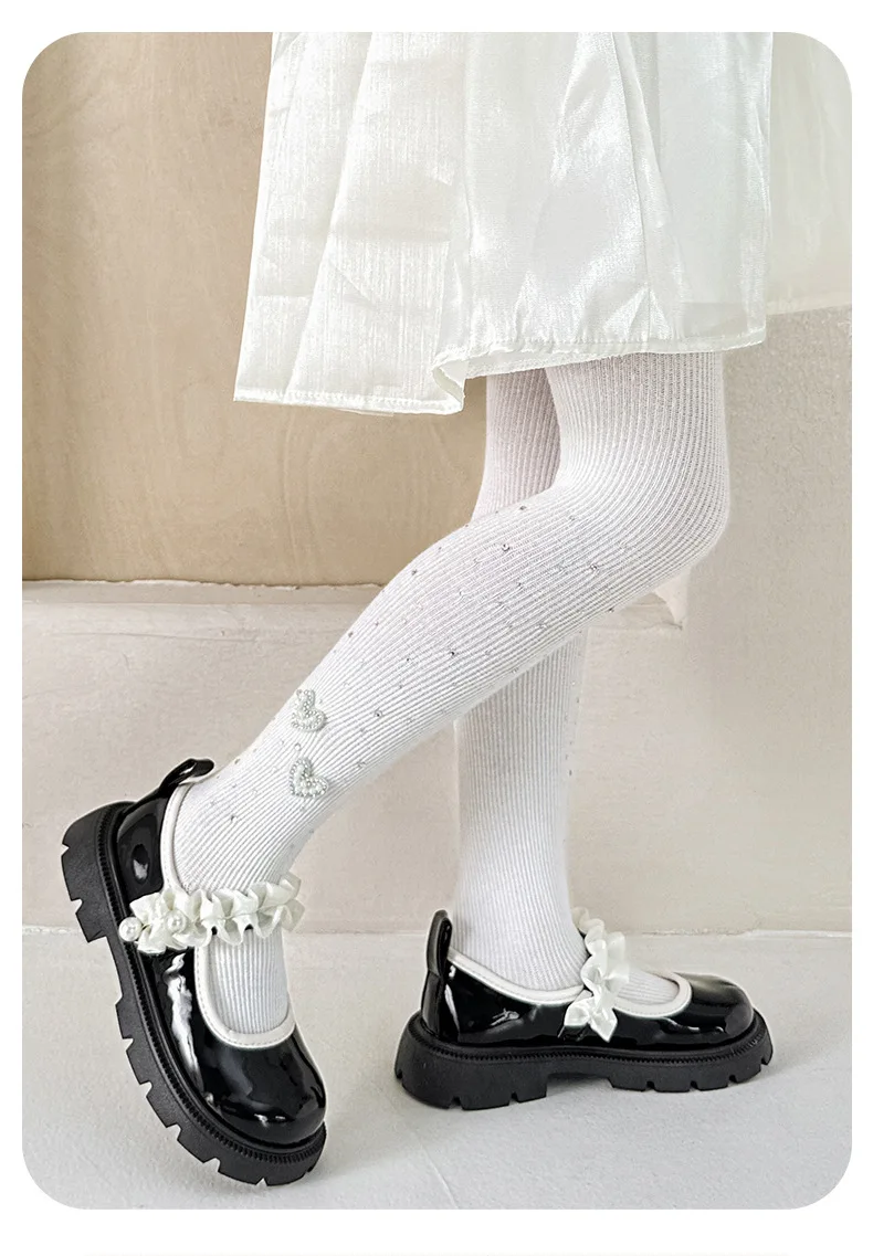 Medias brillantes para niñas, pantimedias transparentes blancas, mallas finas y elegantes con diamantes de imitación, prendas de vestir elegantes, medias de fiesta para primavera y otoño