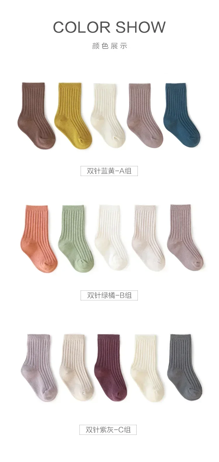 Comprar Medias coreanas de algodón para el hogar, calcetines largos altos blancos a rayas, Color caramelo, accesorios para bebés, niños y niñas, 5 pares