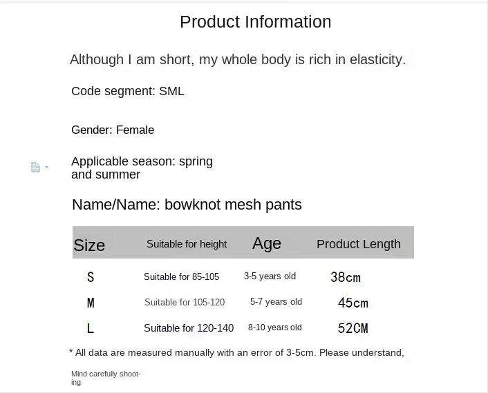 Información: Material: nailon Cantidad: 1 par Temporada: primavera, verano Tamaño del calcetín: Talla S, edad del bebé: 3-5 años, altura: 80-105cm, longitud del producto: 38cm