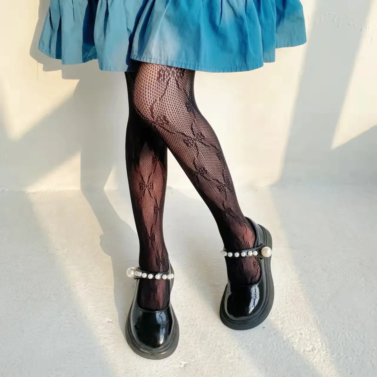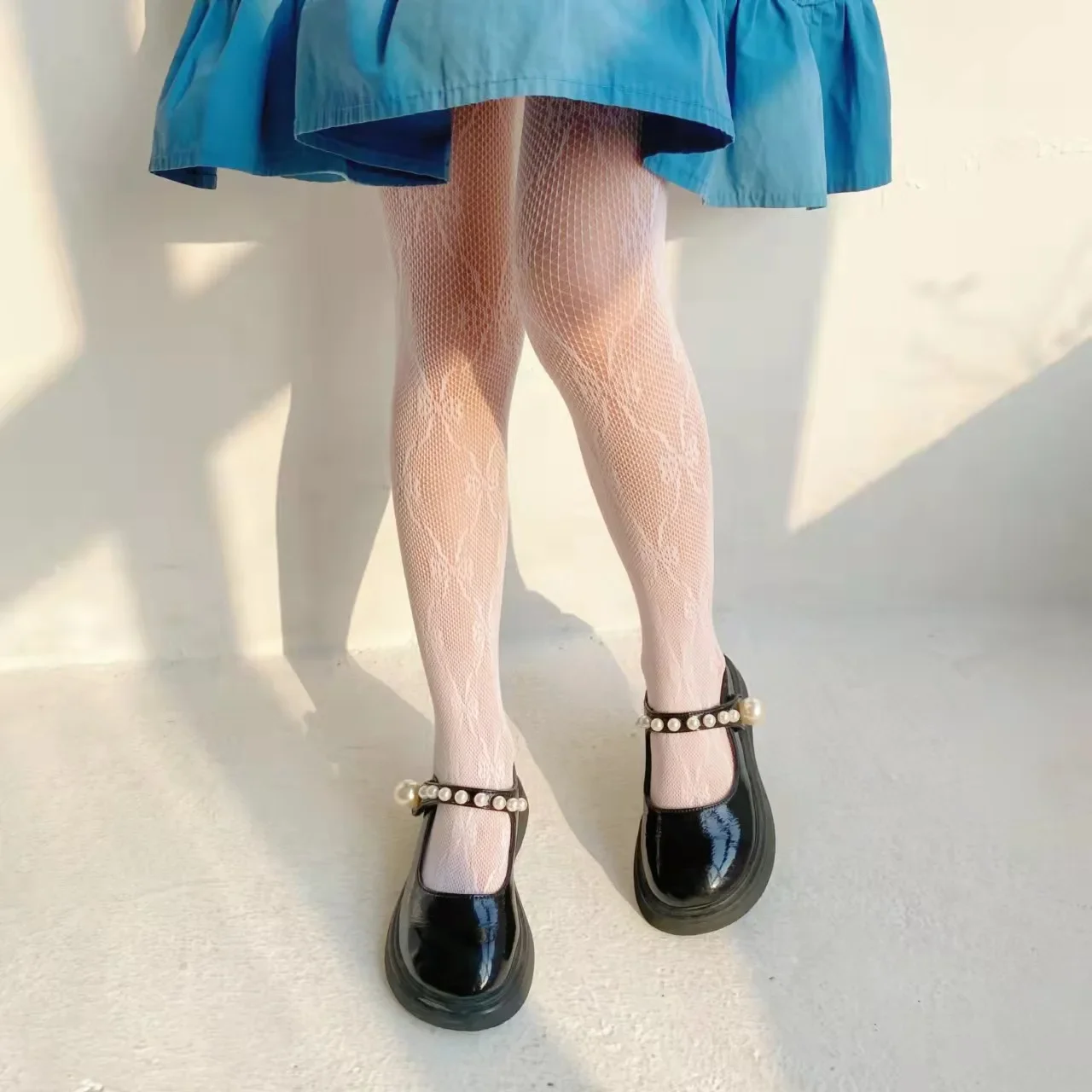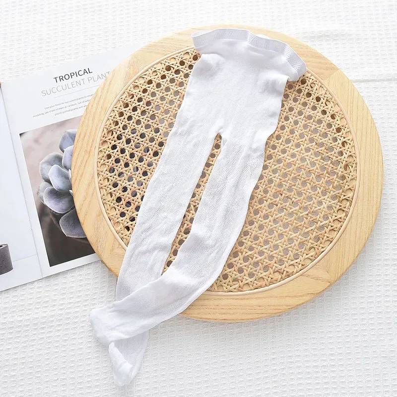Medias de malla huecas con lazo para niños, medias de rejilla de moda dulce, calcetines finos suaves y transpirables para niñas, pantimedias blancas de verano