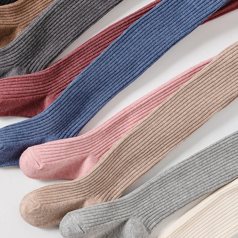 Comprar Medias para niños y niñas, pantimedias tejidas de algodón para primavera y otoño, mallas suaves sólidas para bebés, ajustadas de 1 a 12 años