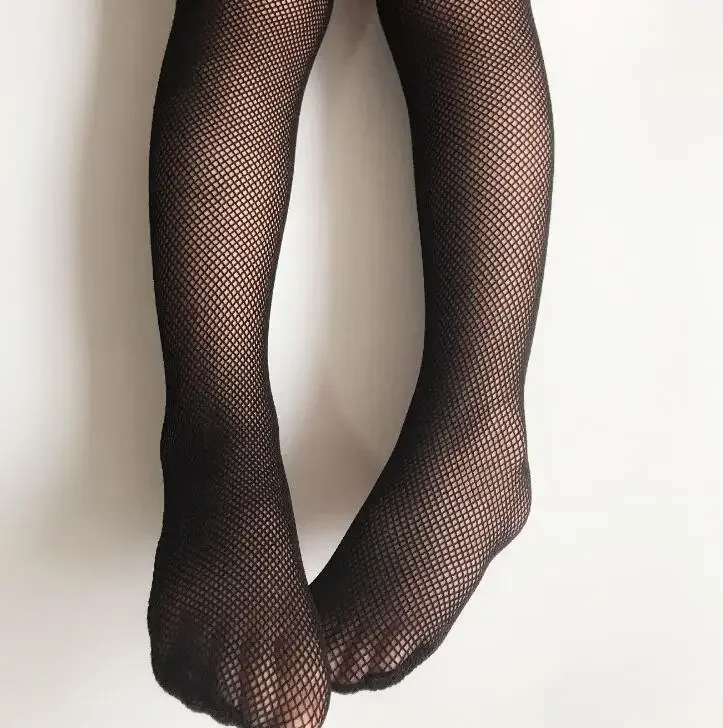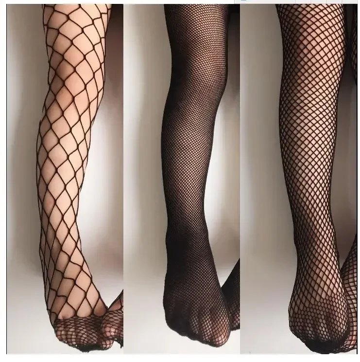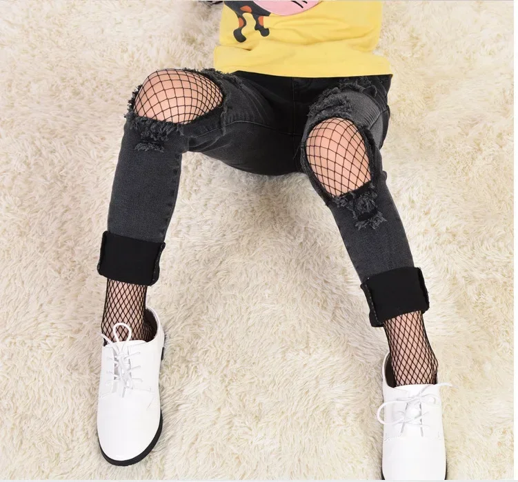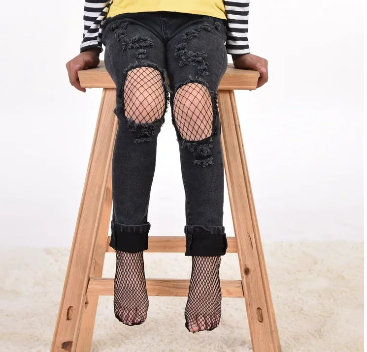 Medias de red para niñas, medias de malla para niños y niñas, pantimedias de baile con rejilla de red blanca y negra con medias vaqueros