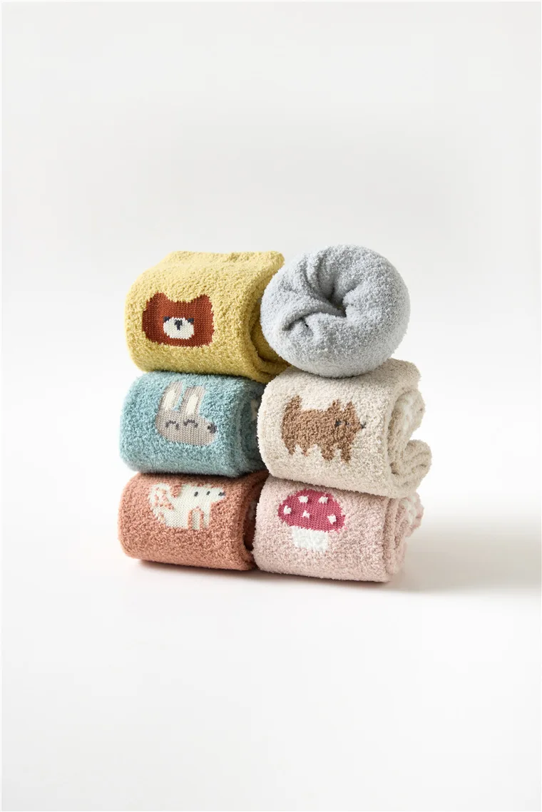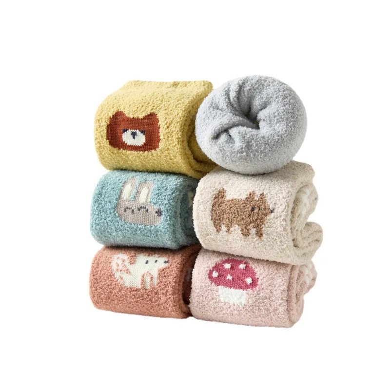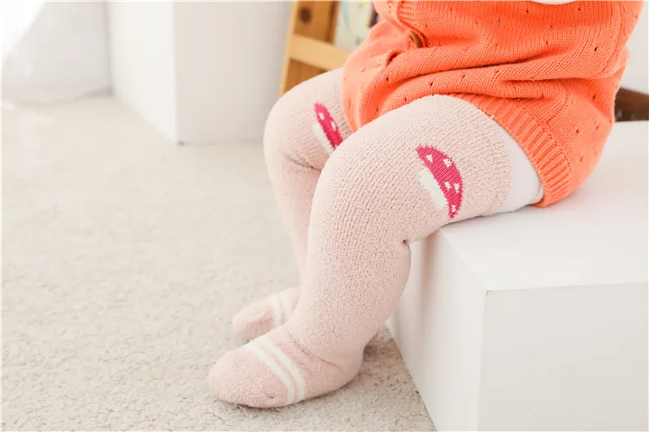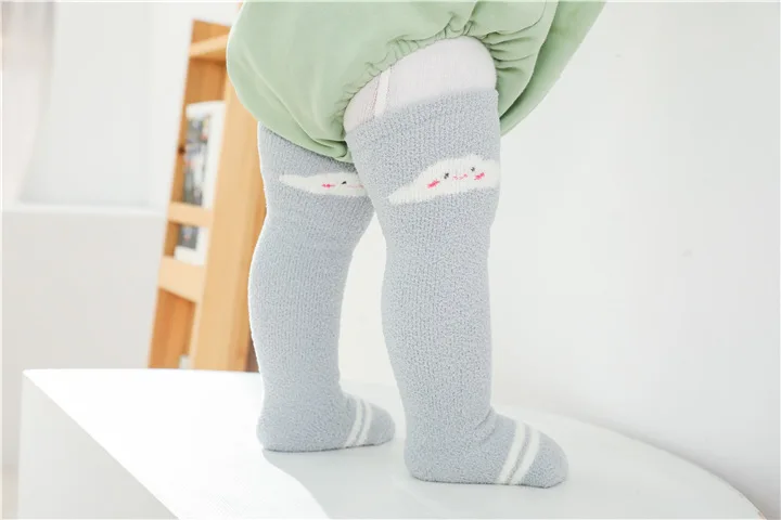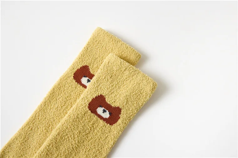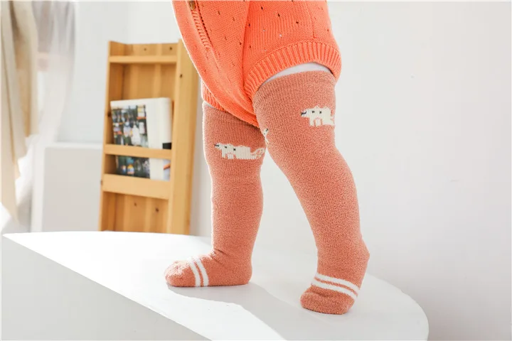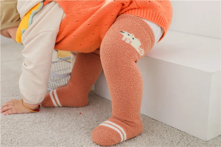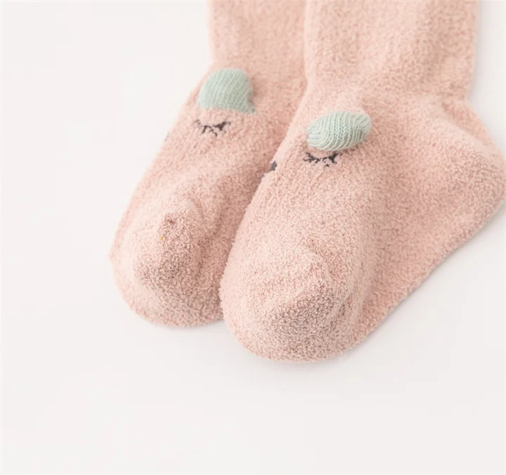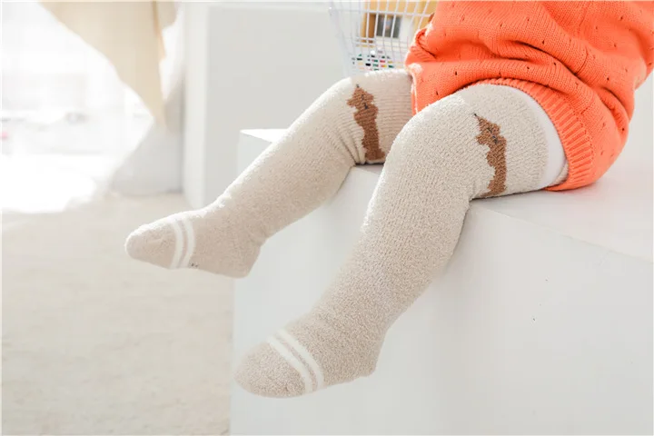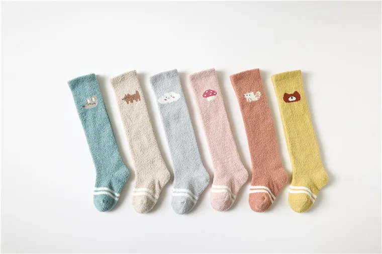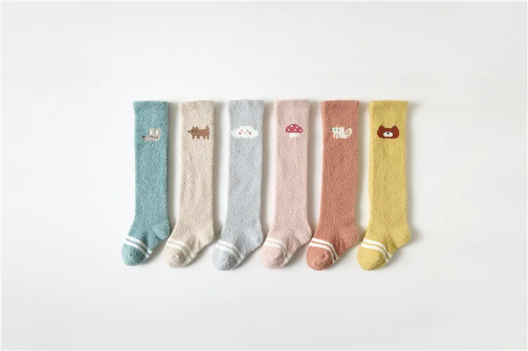 Comprar Medias térmicas cálidas de felpa gruesas para invierno y otoño, calcetín largo hasta la rodilla a rayas con animales de dibujos animados para bebé, niño y niña