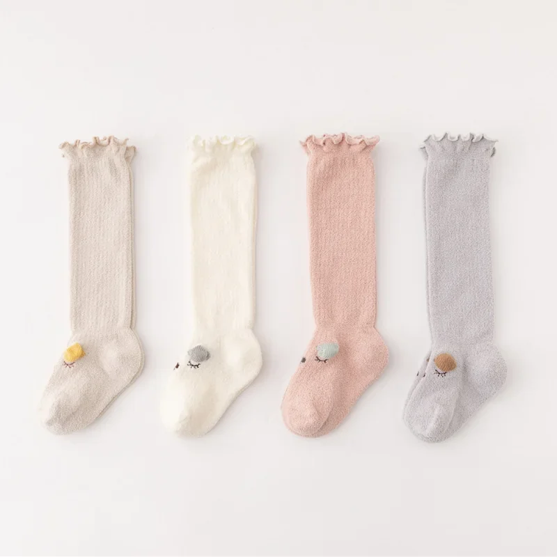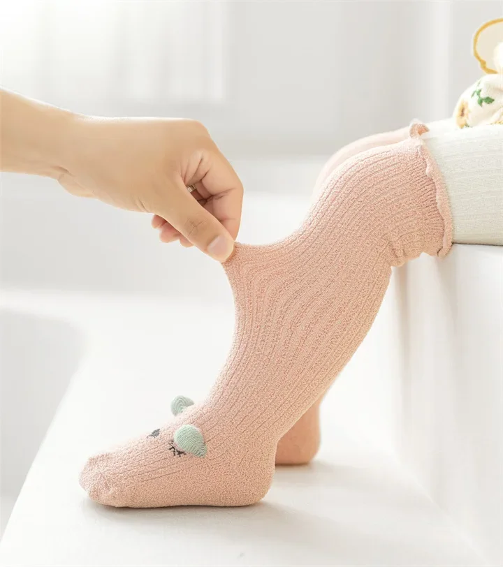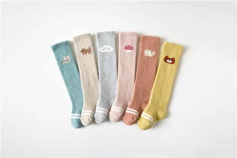 Medias térmicas cálidas de felpa gruesas para invierno y otoño, calcetín largo hasta la rodilla a rayas con animales de dibujos animados para bebé, niño y niña 2023