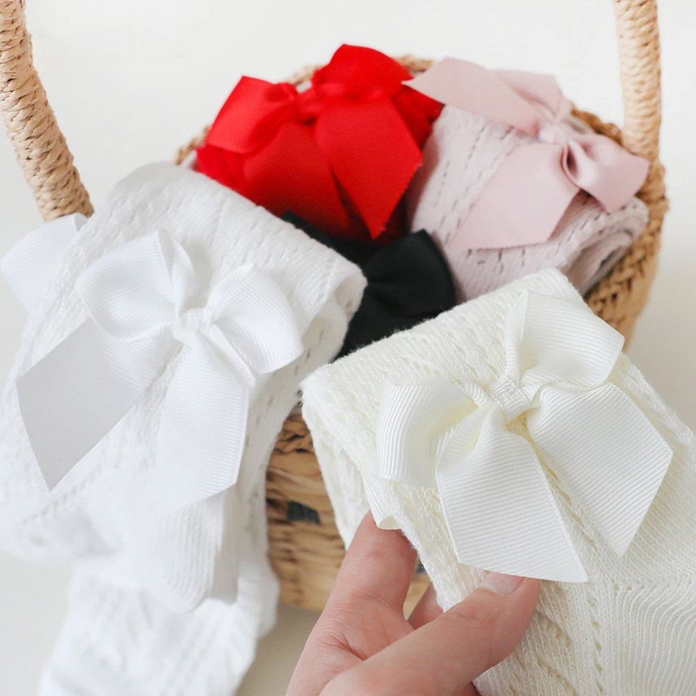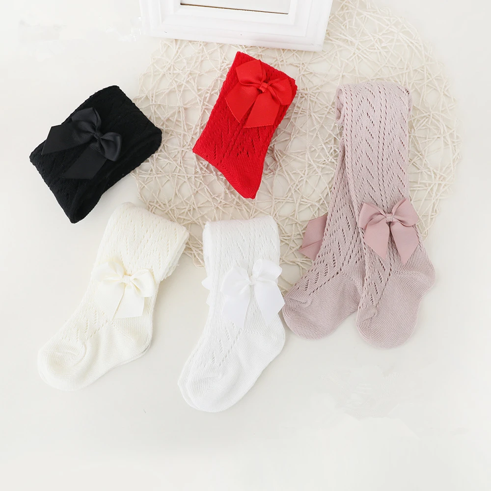 Medias con lazo para primavera y verano para niños de 0 a 4 años, pantimedias de algodón para niñas pequeñas, Collant tejidos para niños