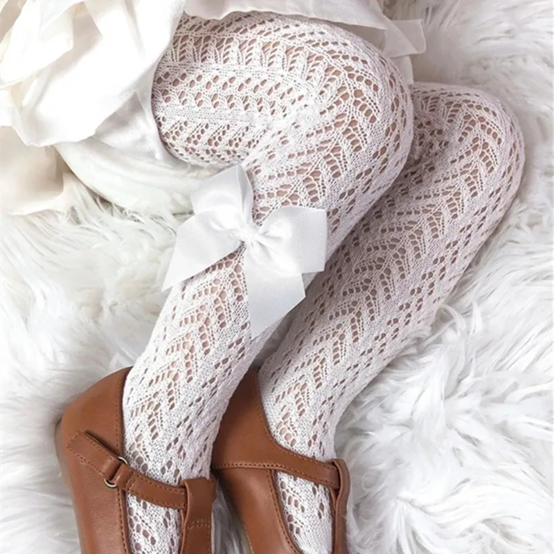 Comprar Medias de verano para niñas, pantimedias con lazo transpirables huecas de estilo español, pantalones de algodón suave para niños pequeños de 0 a 4 años