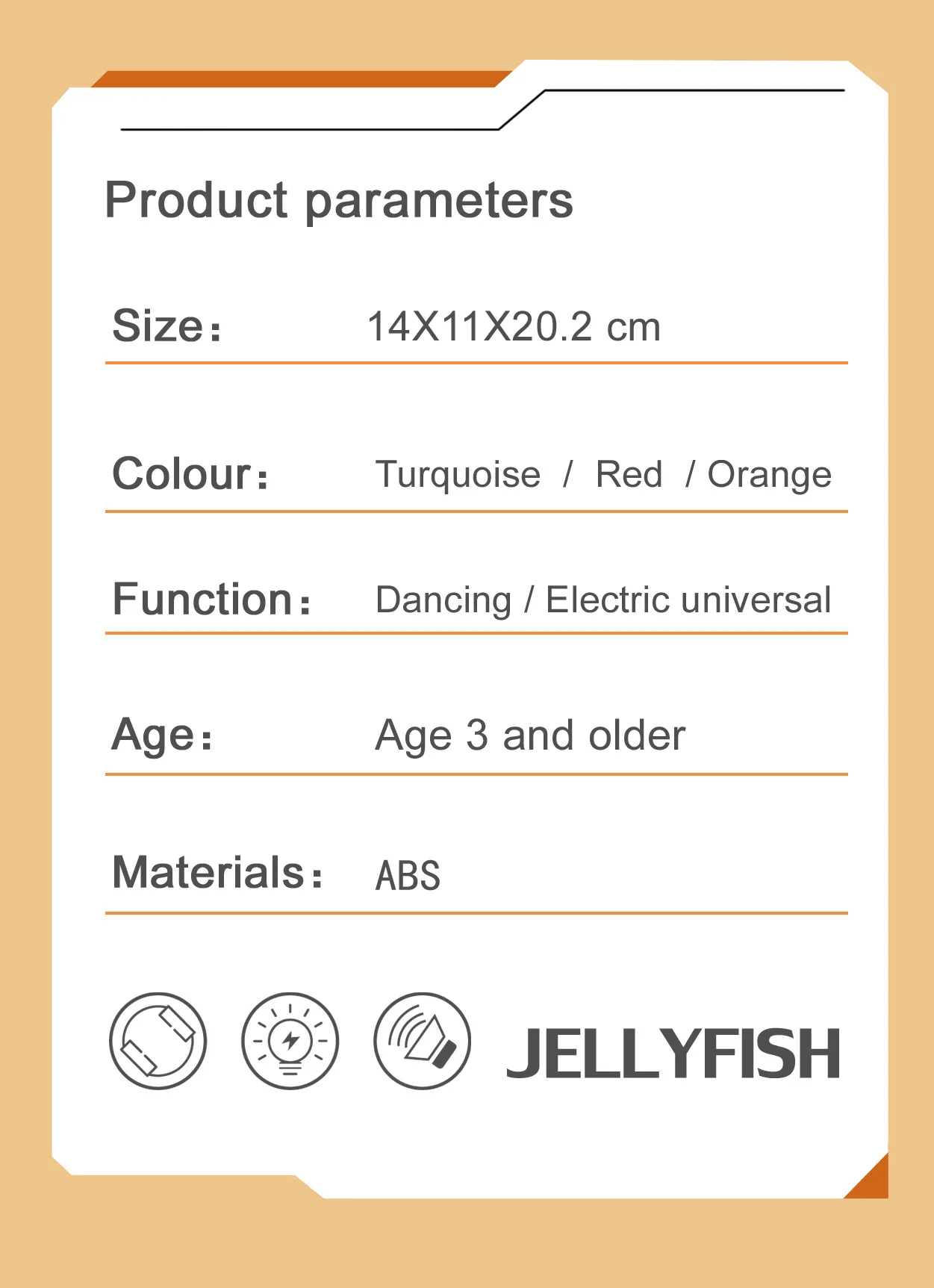 【Multifuncional】 Adecuado para habilidades motoras y desarrollo sensorial. El juguete fomenta el gateo, la marcha y el juego activo.Su movimiento dinámico y sus efectos de sonido ayudan a desarrollar habilidades motoras, coordinación y conciencia sensorial, lo que lo hace divertido y educativo. 【Fomenta el juego activo】Con cada movimiento, esta maravilla medusa encarnable despierta alegría y risas.Adecuado para juegos en interiores, este juguete de medusa de baile eléctrico fomenta el gatear, caminar y el juego activo, lo que lo convierte en una excelente opción para cumpleaños, días festivos o cualquier ocasión: trae risas, alegría y aprendizaje a los niños en crecimiento.
