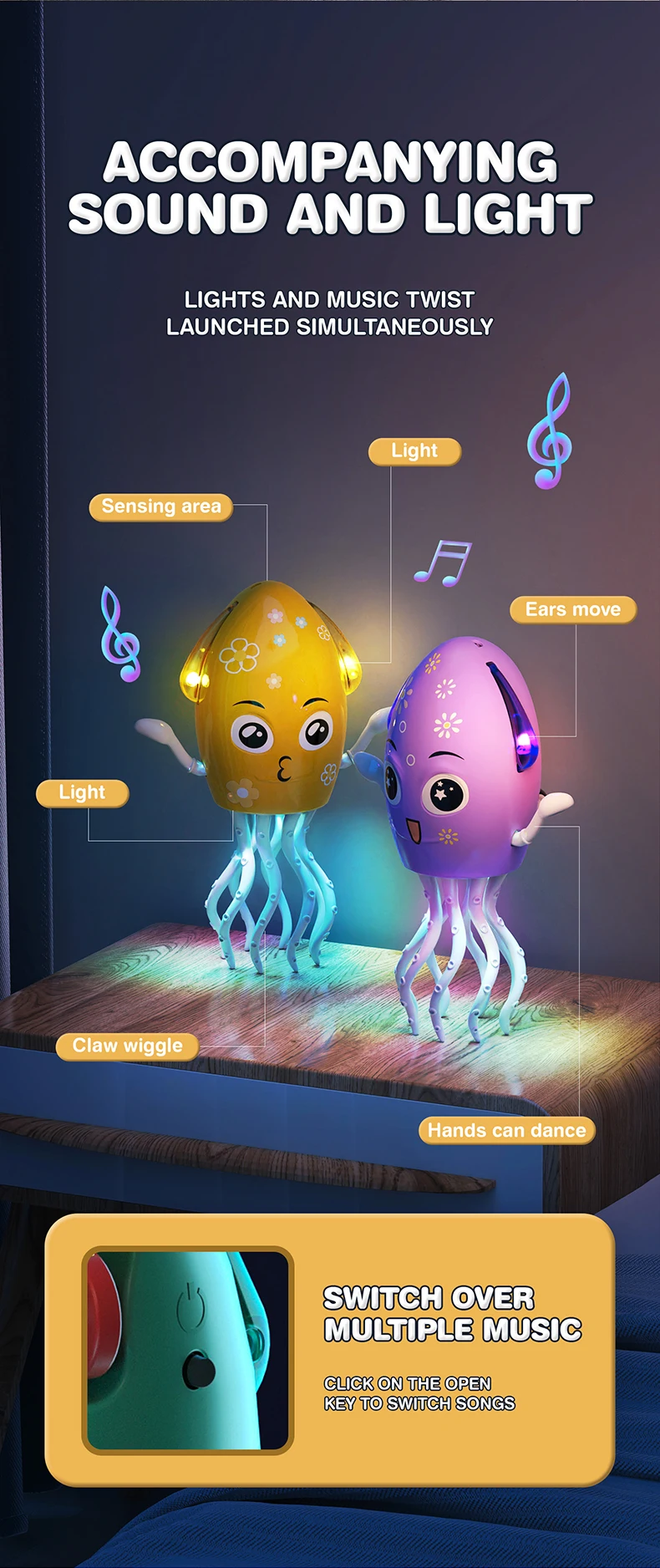 【Diversión de baile interactiva】 El juguete pulpo eléctrico tiene una locura acción de 8 patas y efectos LED coloridos, se mueve, gira, baila y se ilumina, para entretenimiento y juego sensorial.Este juguete ofrece entretenimiento continuo.