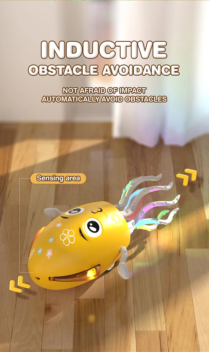 【Evitación inteligente de obstáculos】 Equipado con sensores incorporados, el pulpo autoavigante evita automáticamente obstáculos y redirige su camino, manteniendo la diversión sin interrupciones.