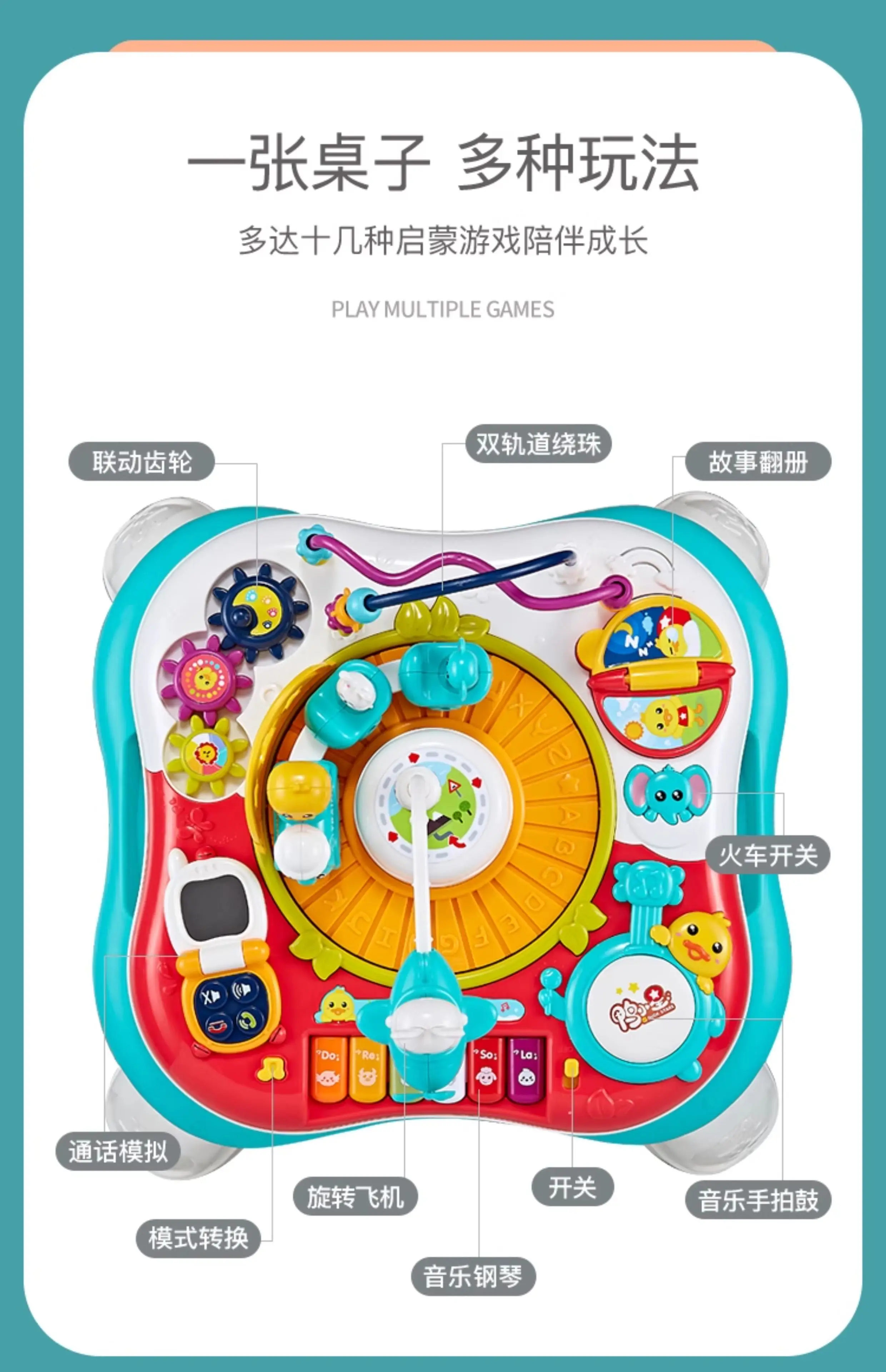 Mesa de actividades multifuncional para bebés, juguete educativo para 6-12 meses más, escritorio de aprendizaje desmontable, múltiples modos, regalo para niños y niñas