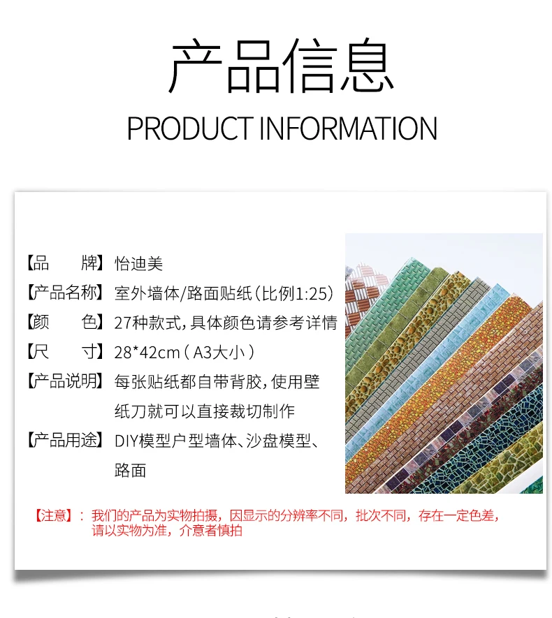 Mesa de arena DIY, material de construcción, modelo de piso o pared, póster para modelo de mini Casa, modelo de micro escena