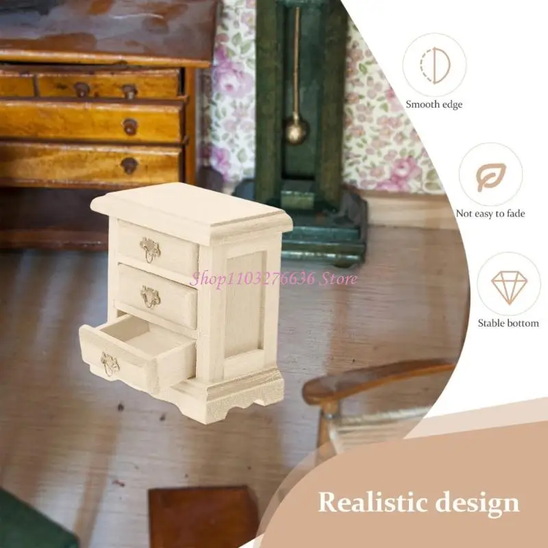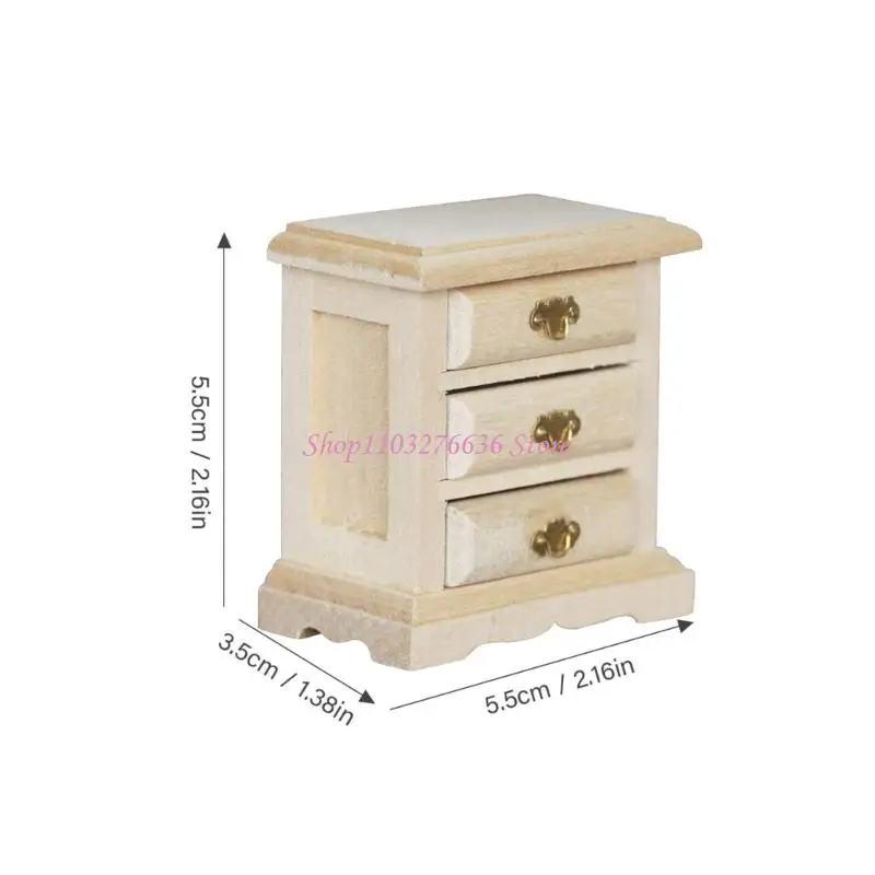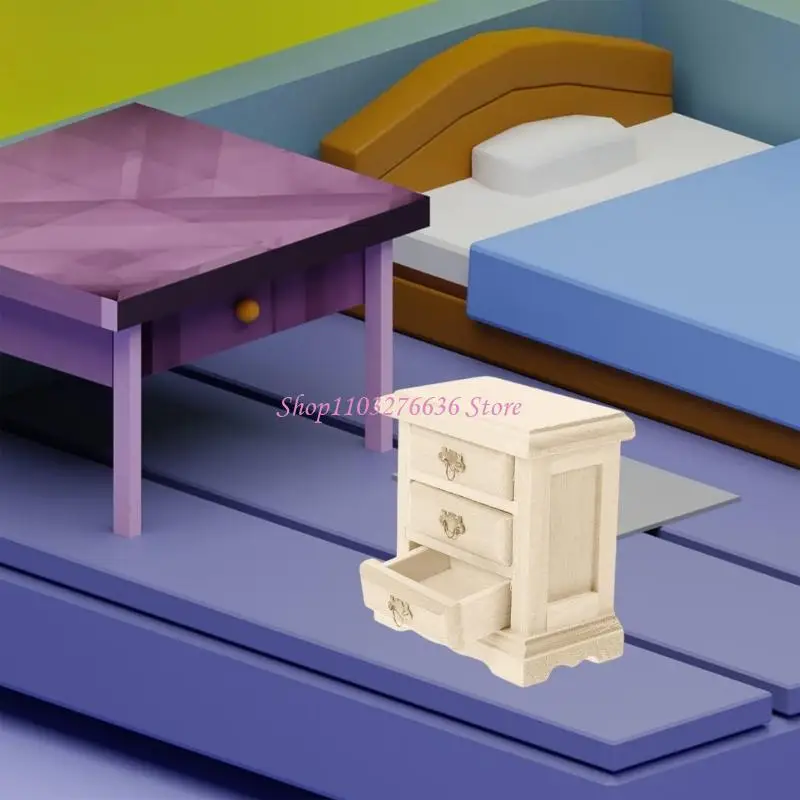Esta mesita de noche sin pintar como decoración decorativa y práctica pieza de almacenamiento, combina perfectamente con el tema de decoración en miniatura y admite la personalización.