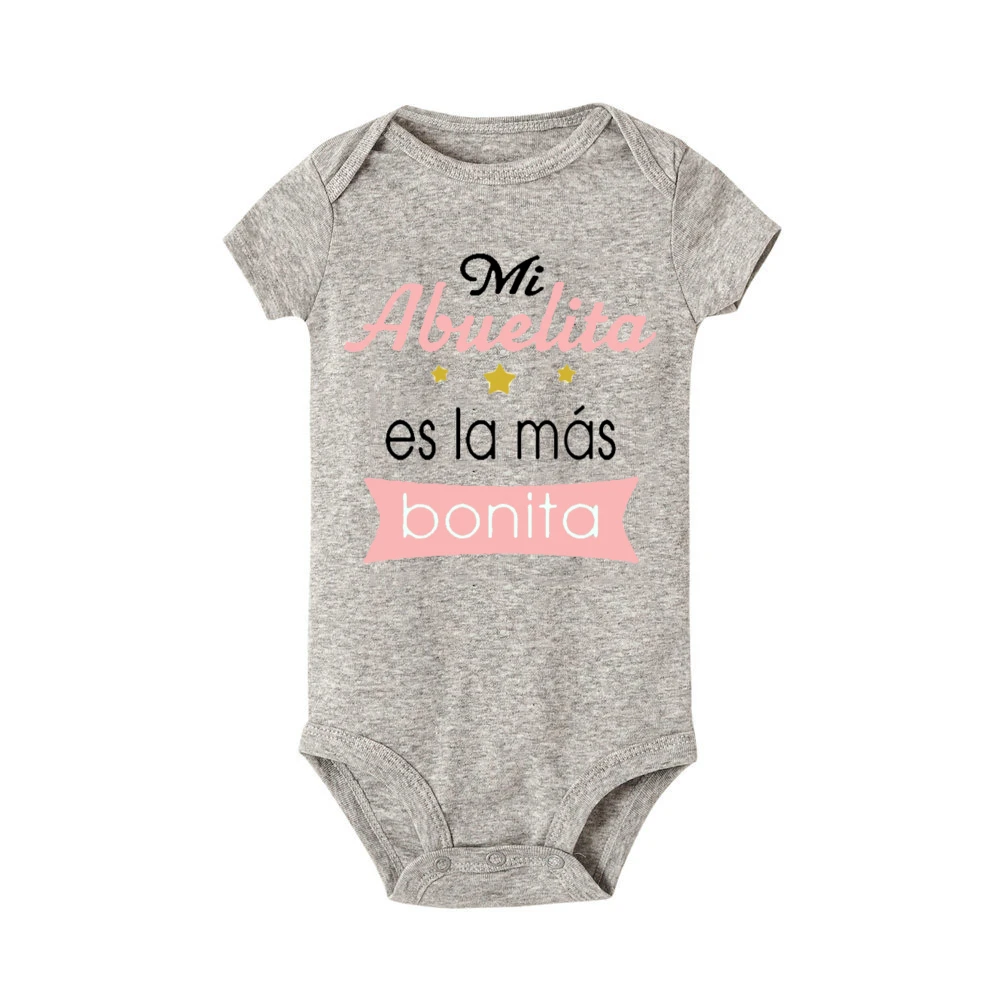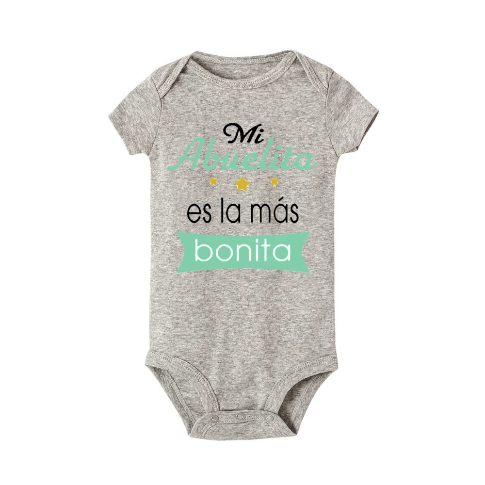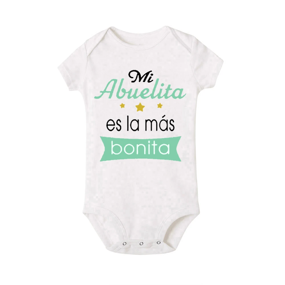 Comprar Mi abuela es la más hermosa mono de bebé con estampado español, ropa divertida para recién nacido, mono de manga corta para bebé