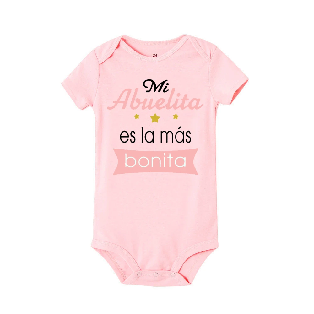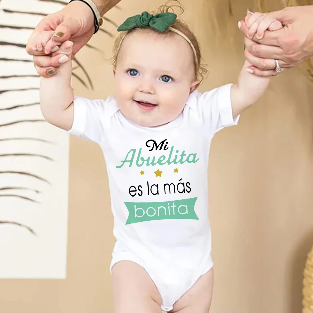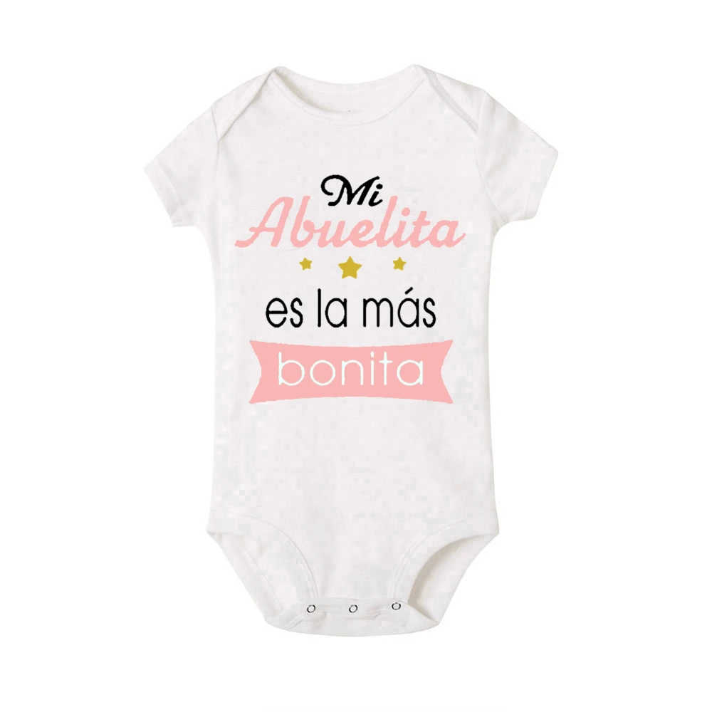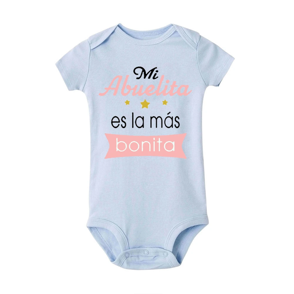 Comprar Mi abuela es la más hermosa mono de bebé con estampado español, ropa divertida para recién nacido, mono de manga corta para bebé