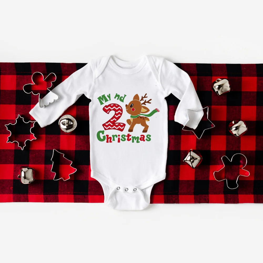 My 2nd Christmas Baby Body Deer Impreso Recién Nacido Monos Fiesta de Navidad Bebé Trajes Infantiles Navidad Niñas Niños Ropa
