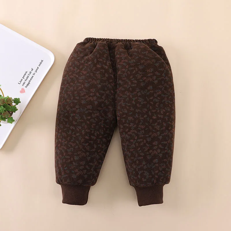 MILANCEL 0-5 años 2024 nuevos pantalones para niños niñas pantalones gruesos con estampado de orejas de trigo forro de piel de invierno pantalones casuales cálidos para niños