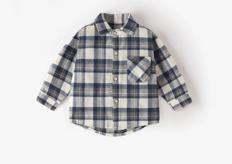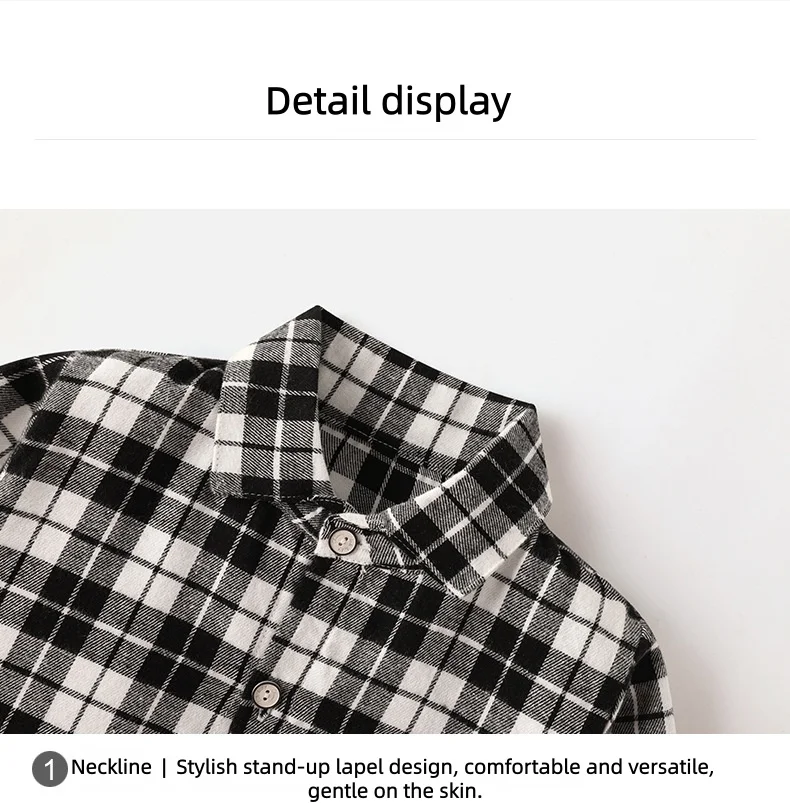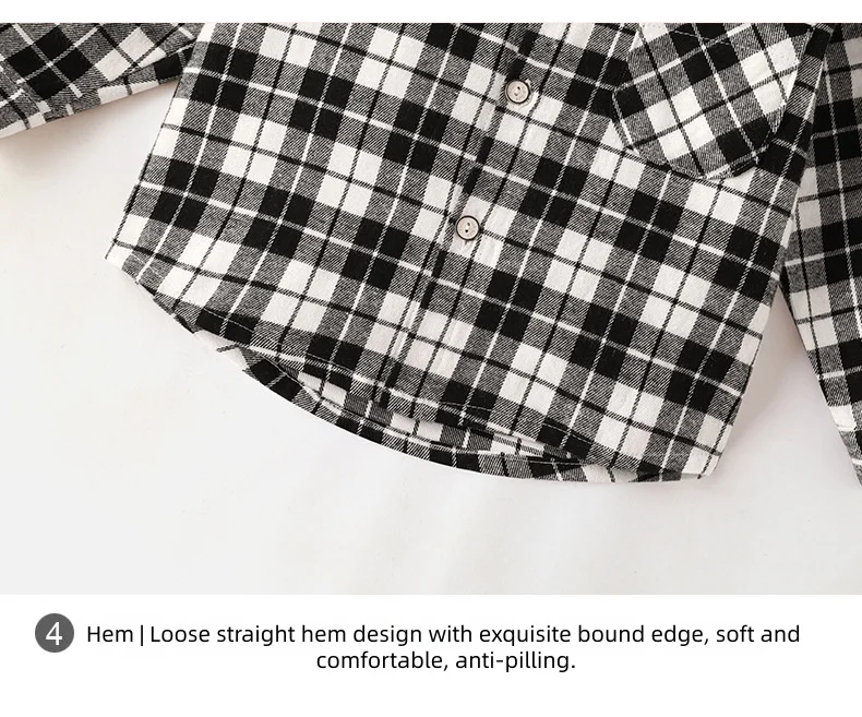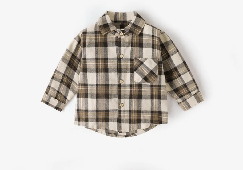 Algodón cepillado suave para mayor comodidad en la primavera Esta camisa a cuadros para niños utiliza tela de algodón cepillado transpirable: suave contra la piel y ligeramente cálida, que combina con la búsqueda caliente de AliExpress; top de primavera para niños de algodón cepillado;