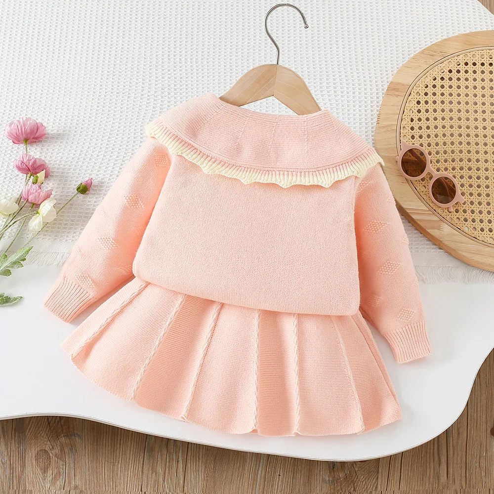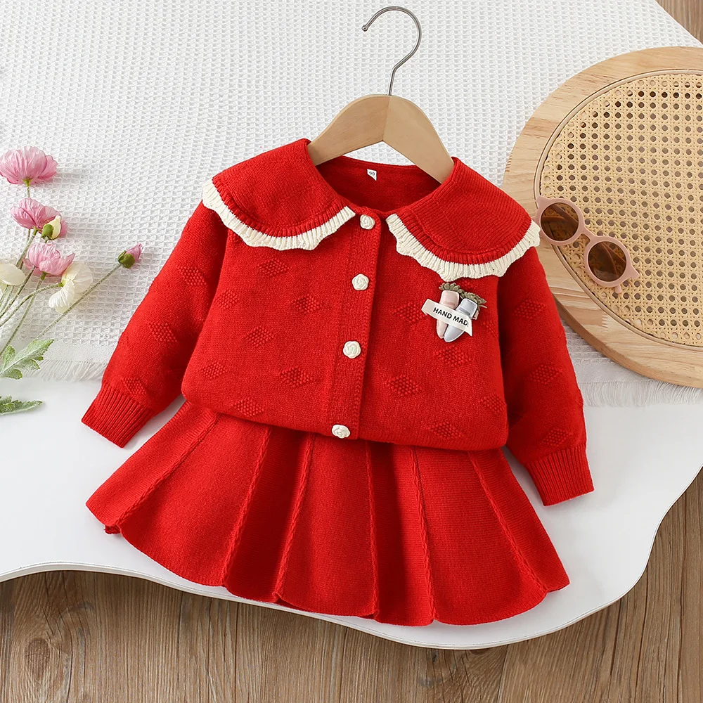 Comprar MILANCEL-Conjunto de punto para niños de otoño, traje a juego con cuello de muñeca Vintage de 9M-5Y con broche natural, cárdigan suave para niños pequeños + falda