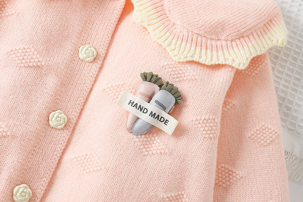 Playful accents (e.g., carrot brooches) add natural charm—stands out as a unique, gift-worthy feature for nature-loving families.