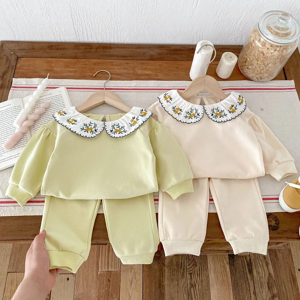 Comprar MILANCEL-Conjunto de ropa para niños de 0 a 4 años, sudaderas con capucha y cuello de muñeca bordado, traje, jersey y pantalones para chico, 2 uds., otoño 2024