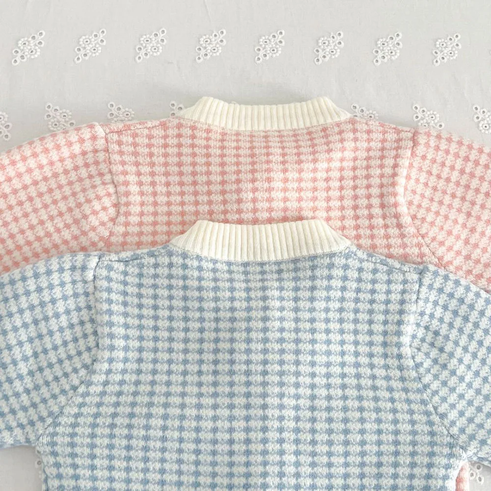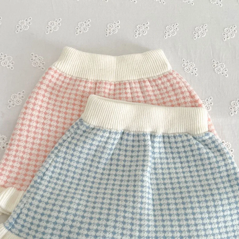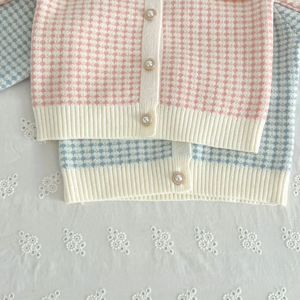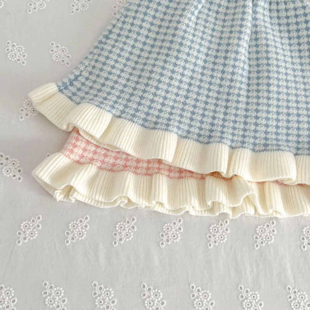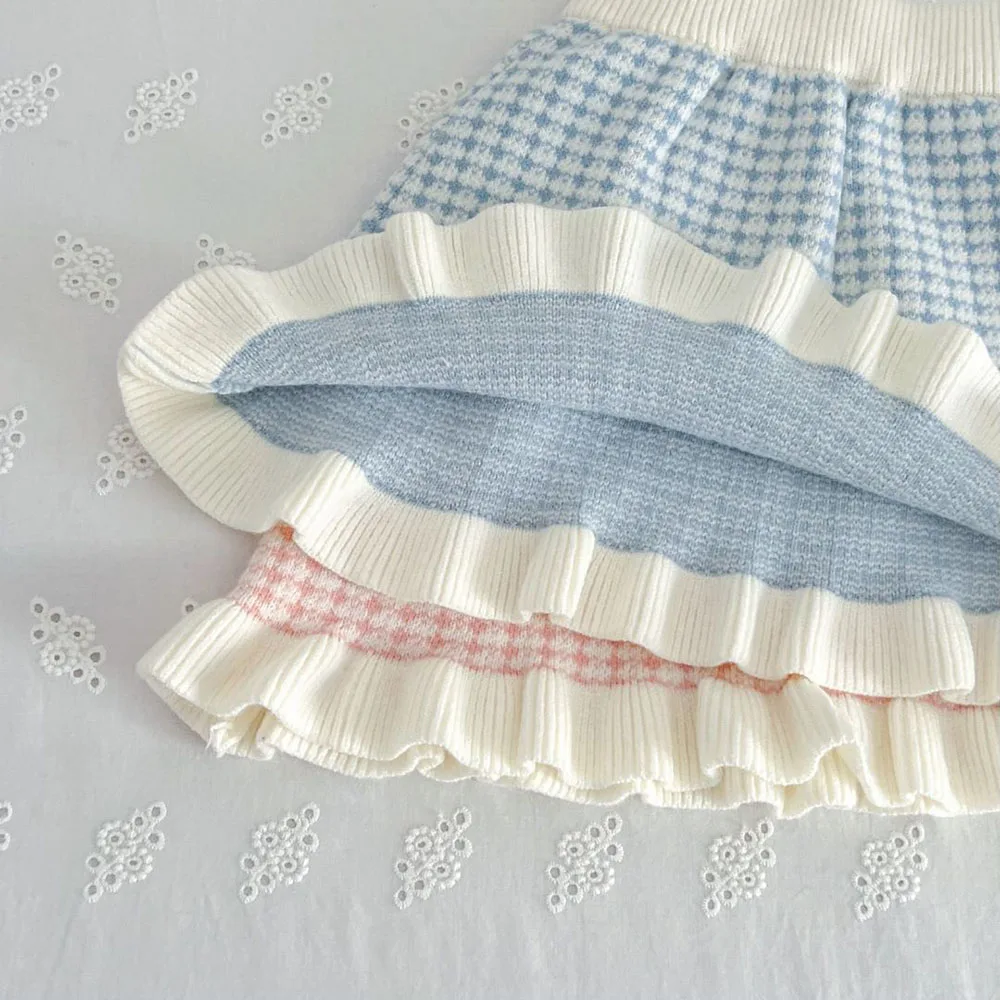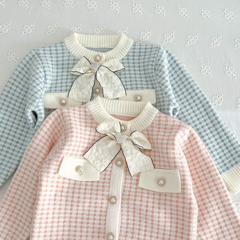 Comprar MILANCEL-Conjunto de ropa para niños de 1 a 5 años, suéter y falda de punto a cuadros, 2 uds., cárdigan con lazo a la moda para primavera y otoño