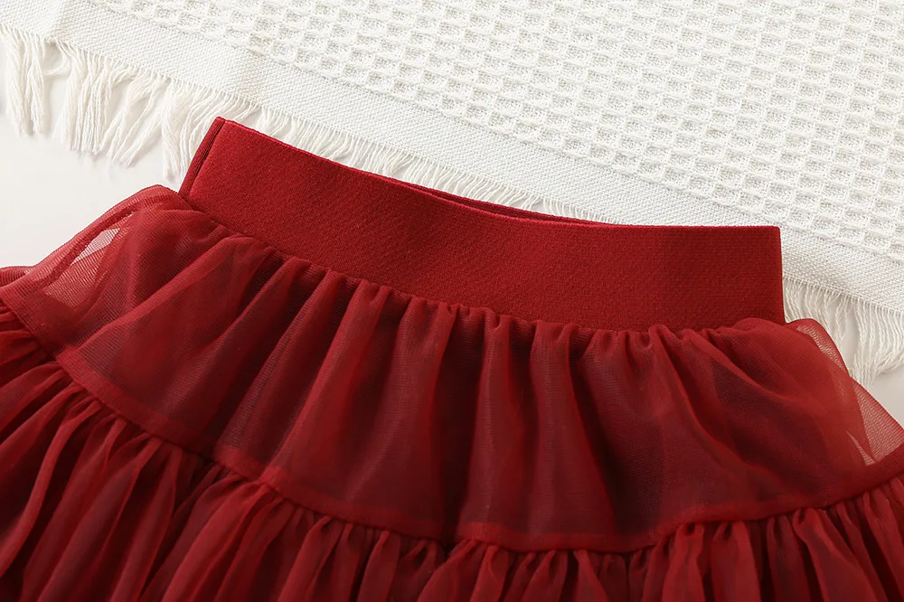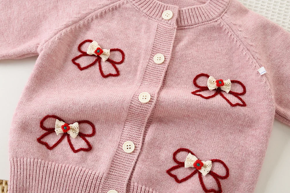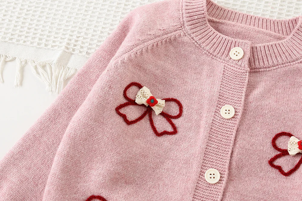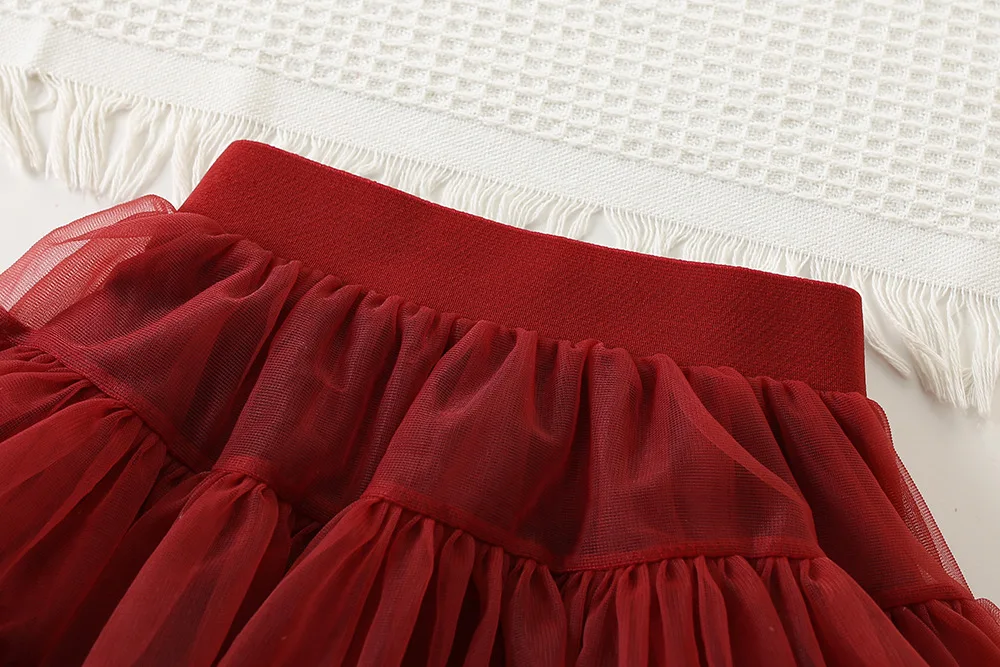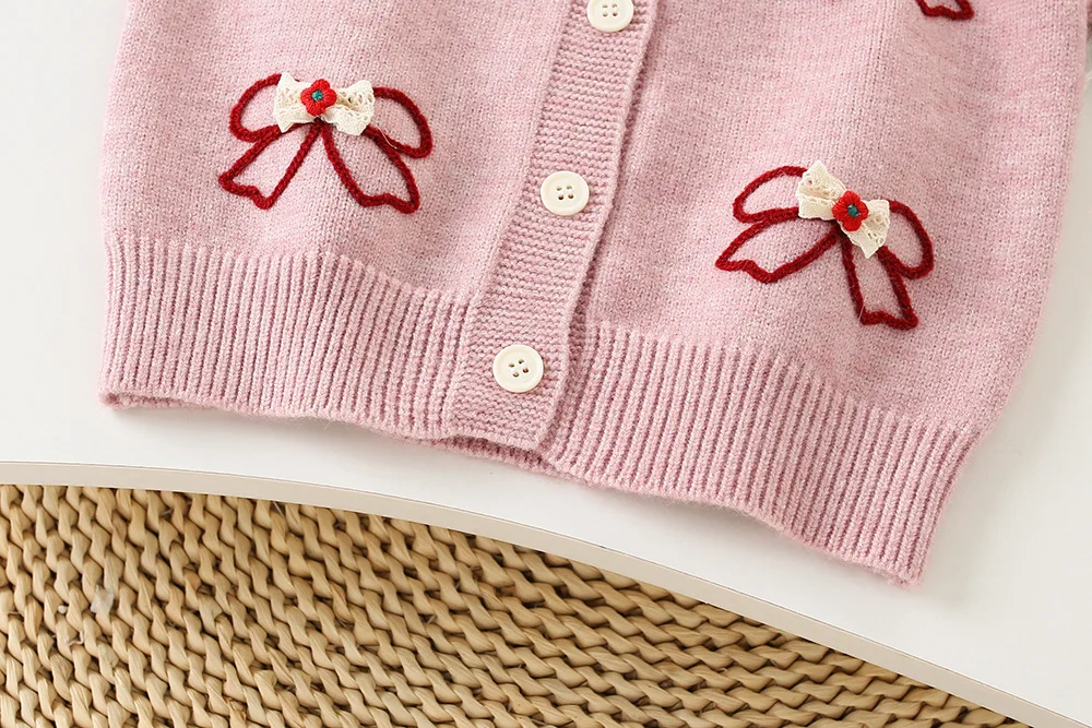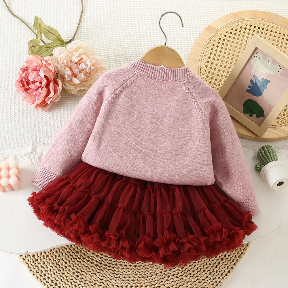 Comprar MILANCEL Conjunto de ropa para niños de 2 a 7 años, cárdigans con lazo de punto, falda de vestido de baile rojo vino, traje de punto para niñas de 2 piezas