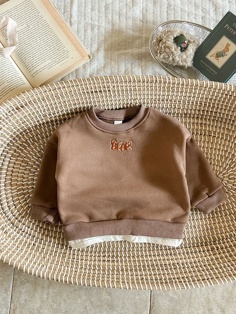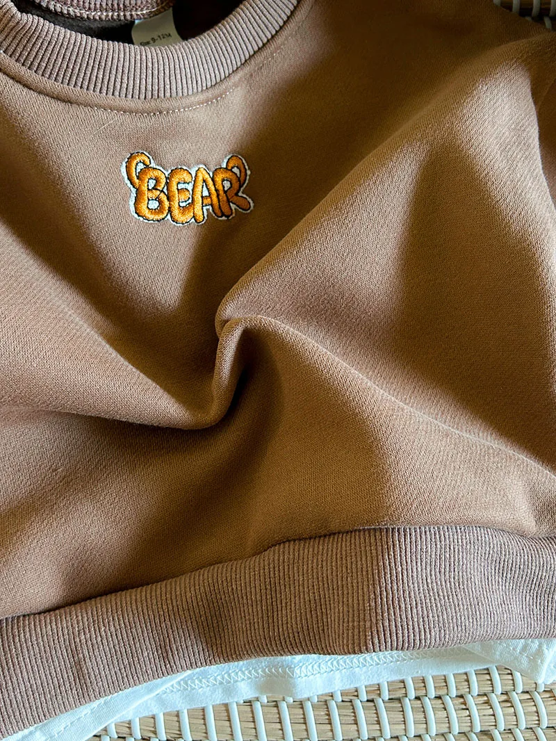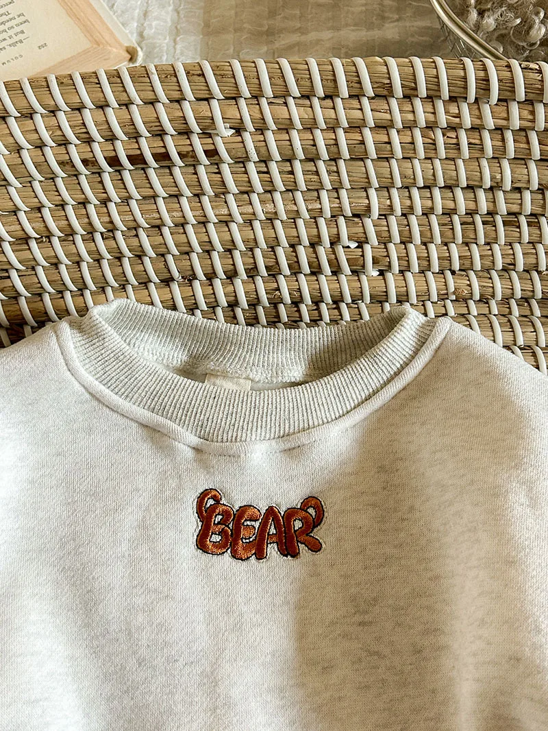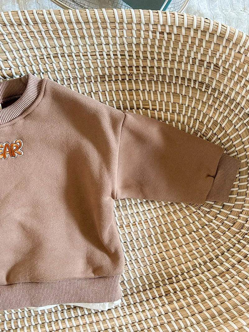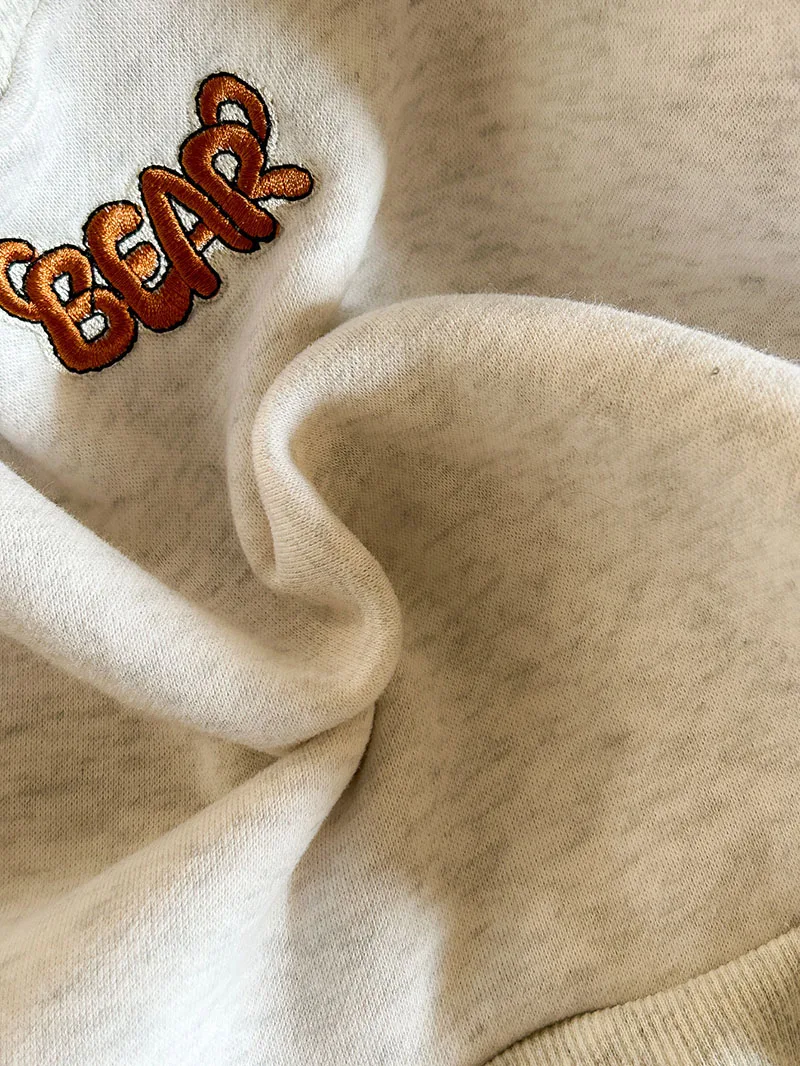 - Frente: letras bordadas de "EBRA"; Espalda: 3 ositos que abrazan con gráficos: duplica la ternura, combina las tendencias de "moda caprichosa para niños".