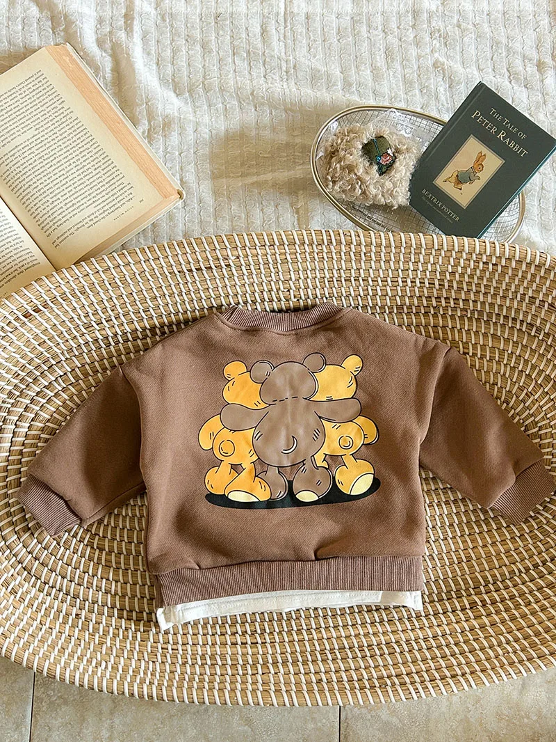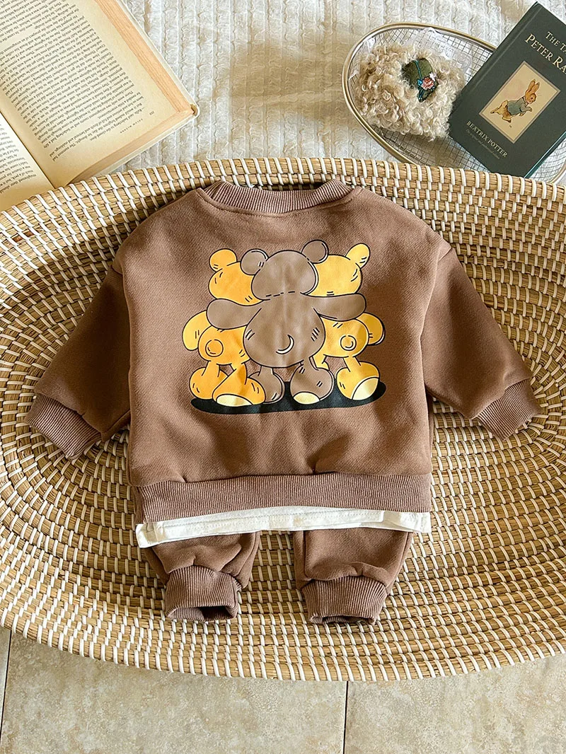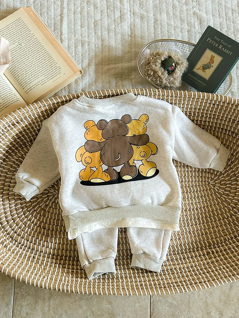 Comprar MILANCEL-Conjunto de Sudadera con capucha para bebé, 9M-4T, oso de dibujos animados, sudadera gruesa para niña, traje versión coreana, traje holgado para niño pequeño, 2 uds.